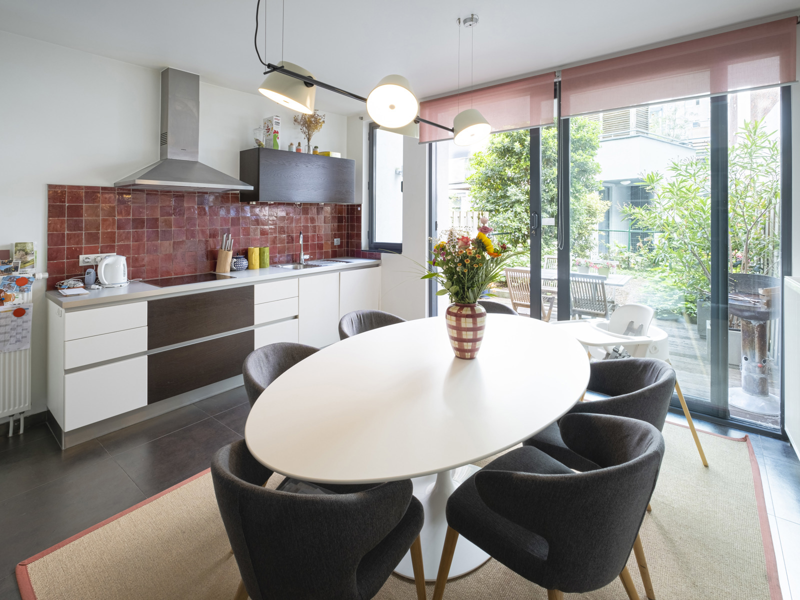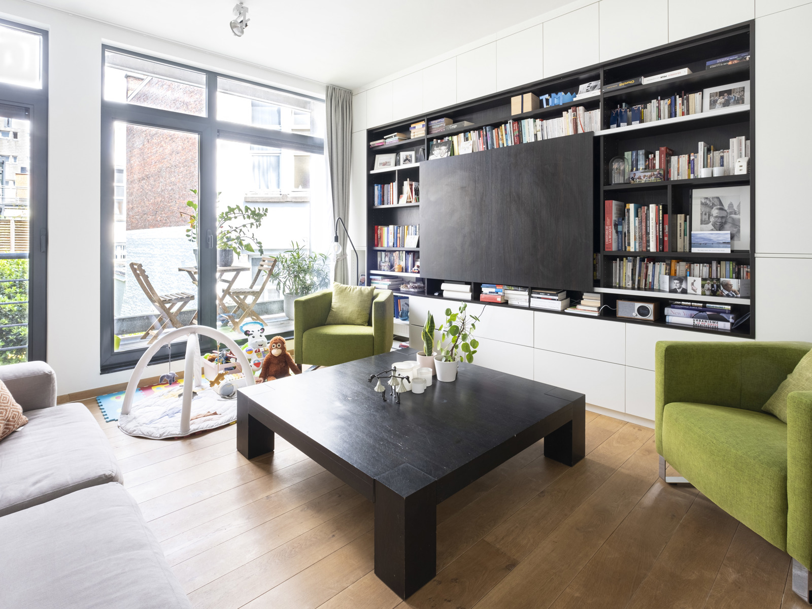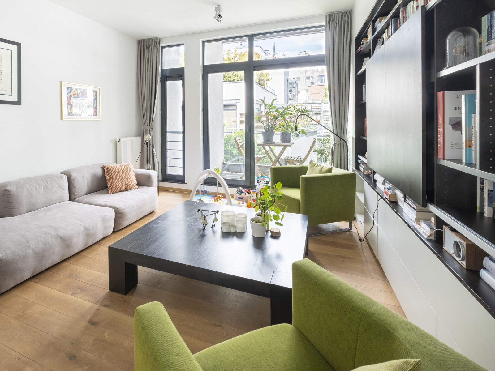 In the heart of the popular Antoine Dansaert district, this duplex of ± 107 m² on the ground floor combines refinement and functionality. The first level offers an entrance hall with cupboards and toilets, a bright dining room with open and equipped kitchen, and a private terrace/garden. Upstairs, a pleasant living room with balcony, two bedrooms, a bathroom, a shower room, as well as a separate toilet. Parquet flooring, gas boiler, double glazing, cellar and alarm system complete this property in perfect condition. Common charges: €150/month. PEB: E-. Available immediately, this accommodation is ideally located in a lively area, close to shops, restaurants and art galleries.