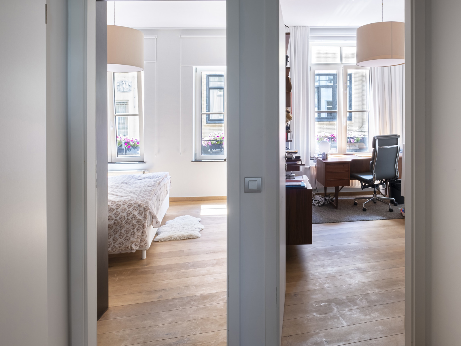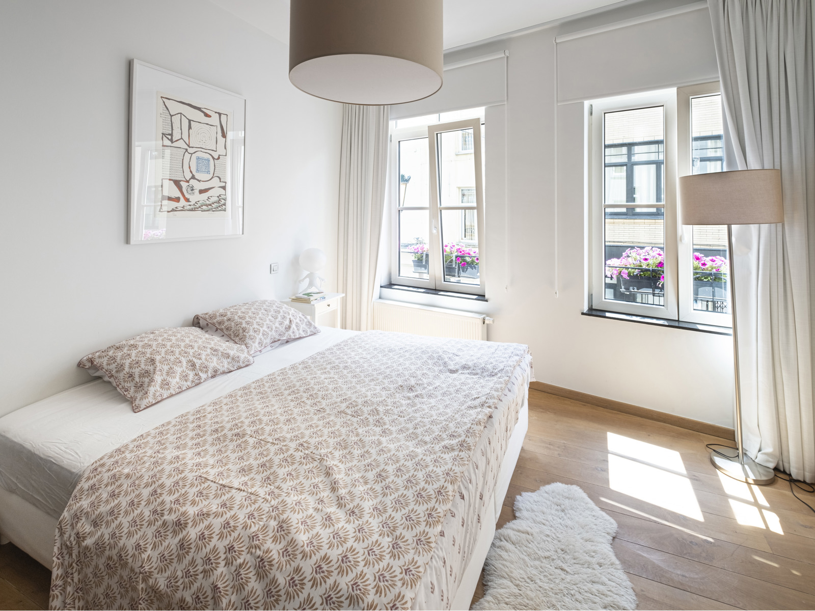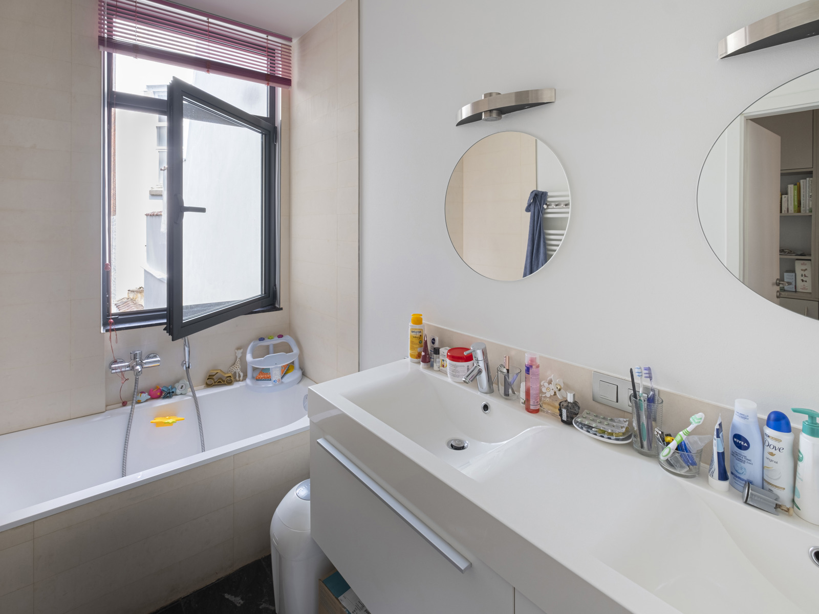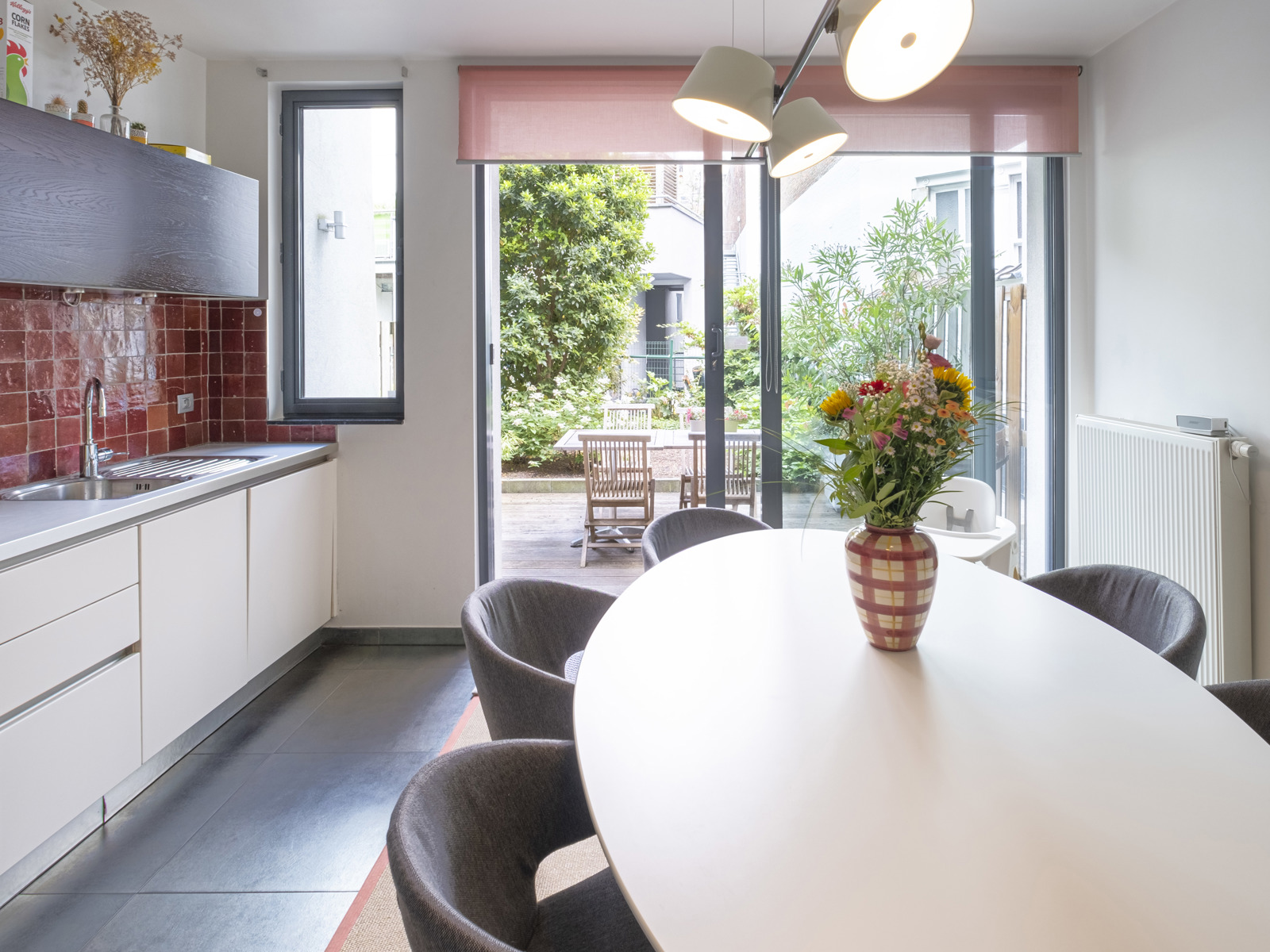 In the heart of the popular Antoine Dansaert district, this duplex of ± 107 m² on the ground floor combines refinement and functionality. The first level offers an entrance hall with cupboards and toilets, a bright dining room with open and equipped kitchen, and a private terrace/garden. Upstairs, a pleasant living room with balcony, two bedrooms, a bathroom, a shower room, as well as a separate toilet. Parquet flooring, gas boiler, double glazing, cellar and alarm system complete this property in perfect condition. Common charges: €150/month. PEB: E-. Available immediately, this accommodation is ideally located in a lively area, close to shops, restaurants and art galleries.