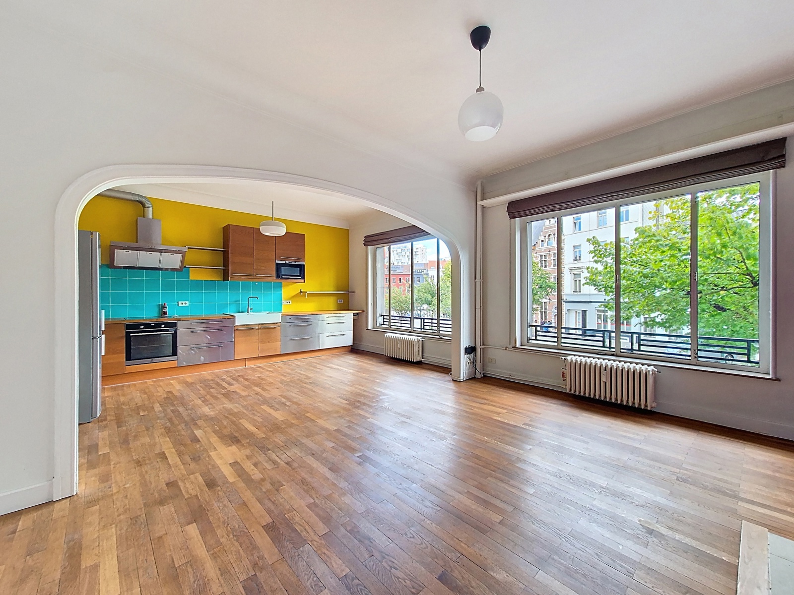 Bettencourt Real Estate presents this charming ±96 m² apartment ideally located in the heart of Brussels, just steps from the Marché au Poisson, the BRONKS theatre, and Place Sainte-Catherine. The property features a bright and spacious living room (±36.9 m²) with large windows and an open-plan fully equipped kitchen. It offers two comfortable bedrooms (±14 m² and ±10.4 m²), a modern bathroom with laundry area, and a separate toilet. With triple-glazed windows, wooden floors, and high ceilings, this apartment perfectly combines comfort and charm. The building includes an elevator, a concierge service, and well-maintained common areas. Charges: €200/month (maintenance of common areas, elevator, and concierge). No parking – cellar not accessible. EPC: E. Available now !!!