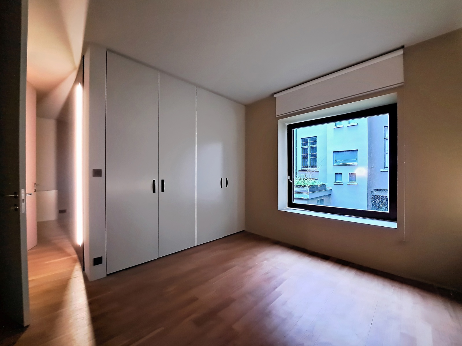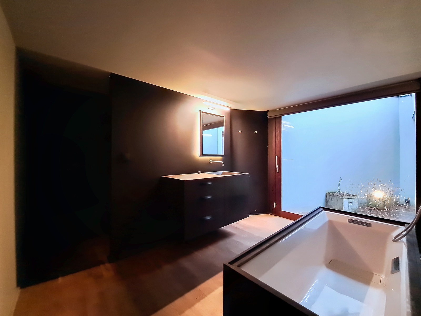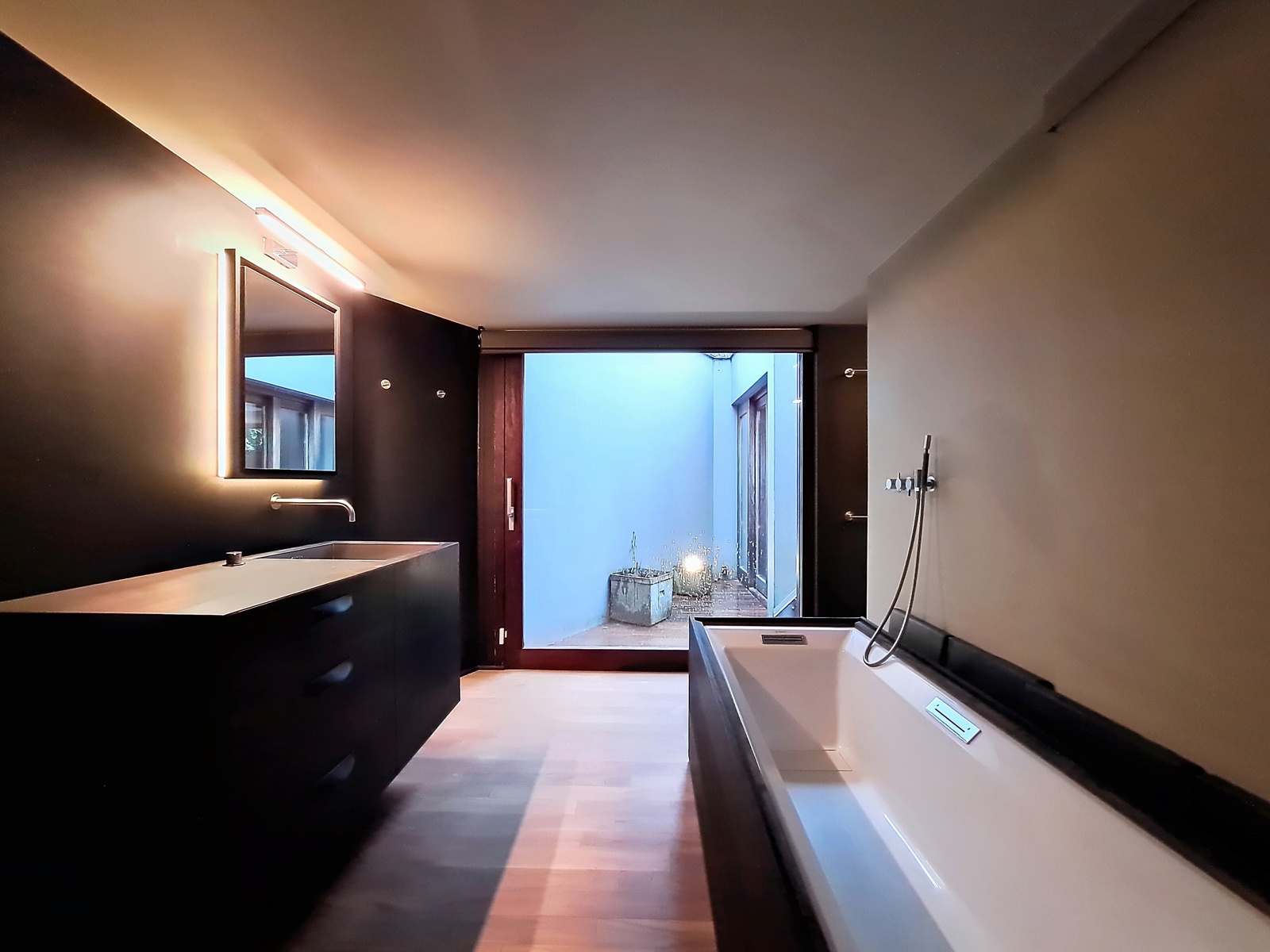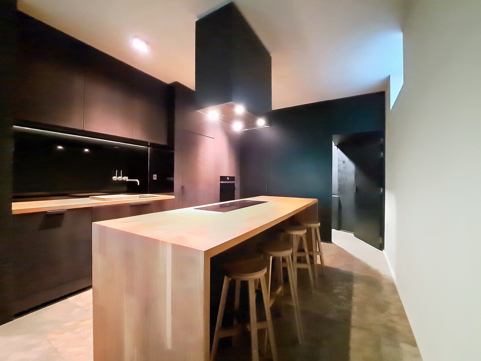 Just a stone's throw from the prestigious Étangs d'Ixelles and Abbaye de la Cambre, this exceptional 180 m² rear house, the result of the conversion of a former warehouse in 2018, combines elegance and comfort in a peaceful, verdant environment. Upon entry, a checkroom with guest toilet welcomes you, opening onto a vast living space bathed in natural light. The 30 m² living room blends harmoniously with the 30 m² dining room, providing an ideal setting for entertaining. The hyper-equipped 20 m² open-plan kitchen, with its top-of-the-range finishings, will meet the demands of cooking enthusiasts. The sleeping area features three comfortable bedrooms with built-in dressing rooms: an 18 m² master suite, a second 16 m² bedroom and a third 12 m² bedroom. Two bathrooms complete this private space, including one with bath and shower, and a second shower room offering comfort and privacy. The highlight of this house is undoubtedly its outdoor spaces: a spacious courtyard on the first floor and an immense 75 m² rooftop terrace, creating a true haven of peace in the heart of the city. On the practical side, the property has two covered parking spaces as well as an outdoor parking space in front of the house, offering flexibility that is rare in Brussels. In perfect condition and available immediately, this rear house offers very high quality features with all individual charges and an EPB: C-.