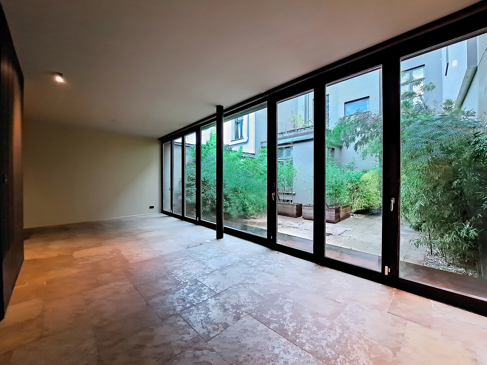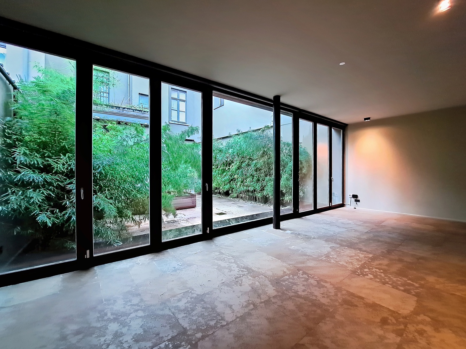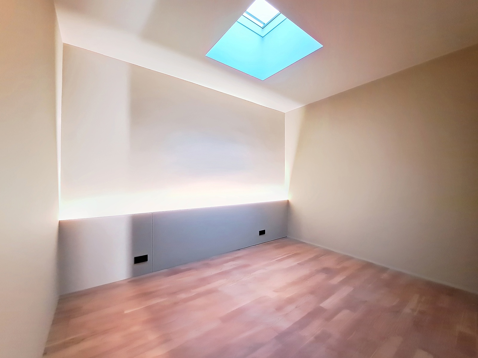 Just a stone's throw from the prestigious Étangs d'Ixelles and Abbaye de la Cambre, this exceptional 180 m² rear house, the result of the conversion of a former warehouse in 2018, combines elegance and comfort in a peaceful, verdant environment. Upon entry, a checkroom with guest toilet welcomes you, opening onto a vast living space bathed in natural light. The 30 m² living room blends harmoniously with the 30 m² dining room, providing an ideal setting for entertaining. The hyper-equipped 20 m² open-plan kitchen, with its top-of-the-range finishings, will meet the demands of cooking enthusiasts. The sleeping area features three comfortable bedrooms with built-in dressing rooms: an 18 m² master suite, a second 16 m² bedroom and a third 12 m² bedroom. Two bathrooms complete this private space, including one with bath and shower, and a second shower room offering comfort and privacy. The highlight of this house is undoubtedly its outdoor spaces: a spacious courtyard on the first floor and an immense 75 m² rooftop terrace, creating a true haven of peace in the heart of the city. On the practical side, the property has two covered parking spaces as well as an outdoor parking space in front of the house, offering flexibility that is rare in Brussels. In perfect condition and available immediately, this rear house offers very high quality features with all individual charges and an EPB: C-.