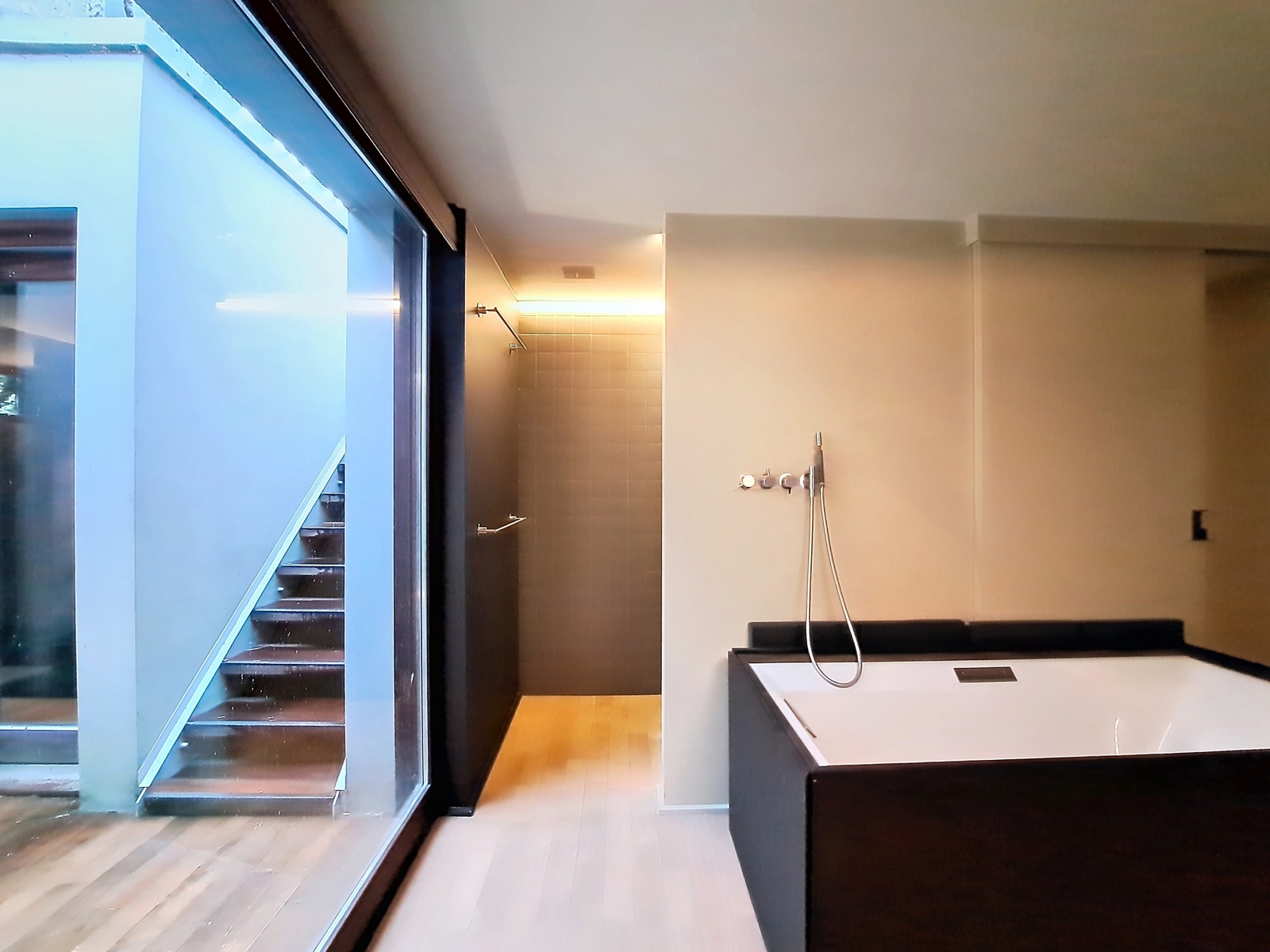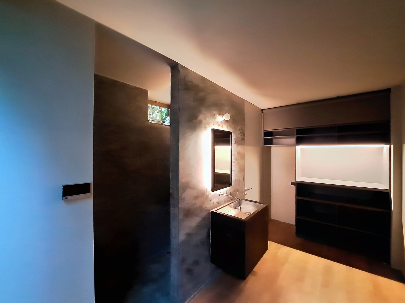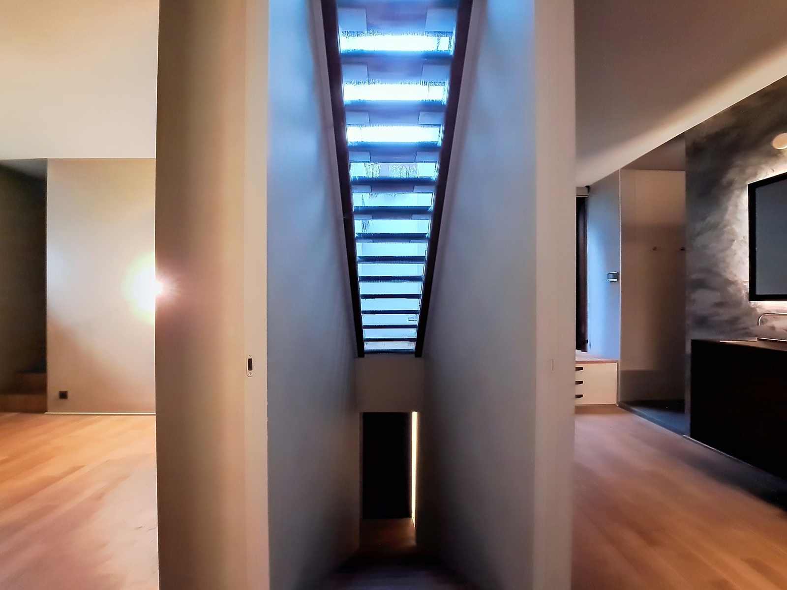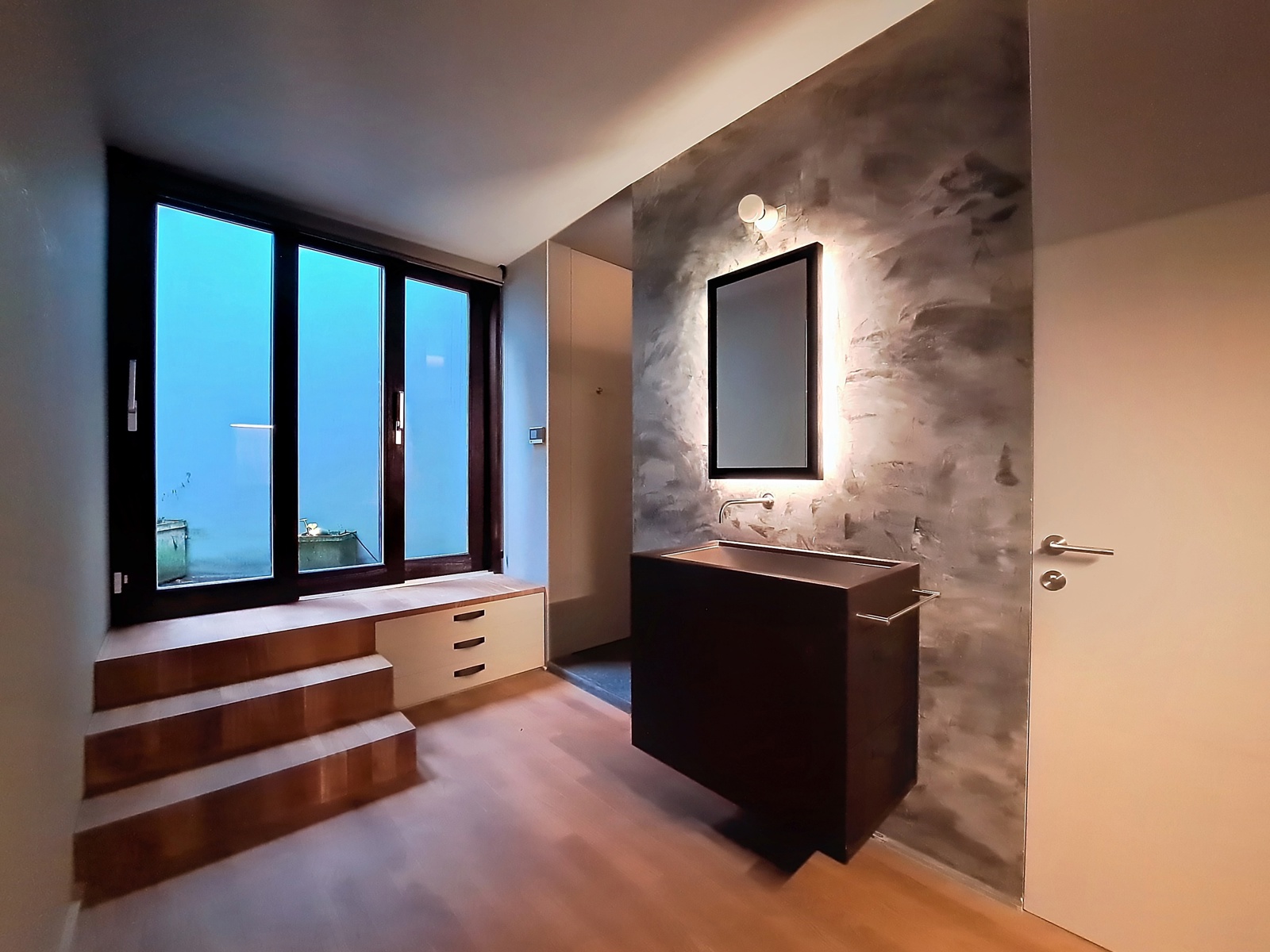 Just a stone's throw from the prestigious Étangs d'Ixelles and Abbaye de la Cambre, this exceptional 180 m² rear house, the result of the conversion of a former warehouse in 2018, combines elegance and comfort in a peaceful, verdant environment. Upon entry, a checkroom with guest toilet welcomes you, opening onto a vast living space bathed in natural light. The 30 m² living room blends harmoniously with the 30 m² dining room, providing an ideal setting for entertaining. The hyper-equipped 20 m² open-plan kitchen, with its top-of-the-range finishings, will meet the demands of cooking enthusiasts. The sleeping area features three comfortable bedrooms with built-in dressing rooms: an 18 m² master suite, a second 16 m² bedroom and a third 12 m² bedroom. Two bathrooms complete this private space, including one with bath and shower, and a second shower room offering comfort and privacy. The highlight of this house is undoubtedly its outdoor spaces: a spacious courtyard on the first floor and an immense 75 m² rooftop terrace, creating a true haven of peace in the heart of the city. On the practical side, the property has two covered parking spaces as well as an outdoor parking space in front of the house, offering flexibility that is rare in Brussels. In perfect condition and available immediately, this rear house offers very high quality features with all individual charges and an EPB: C-.
