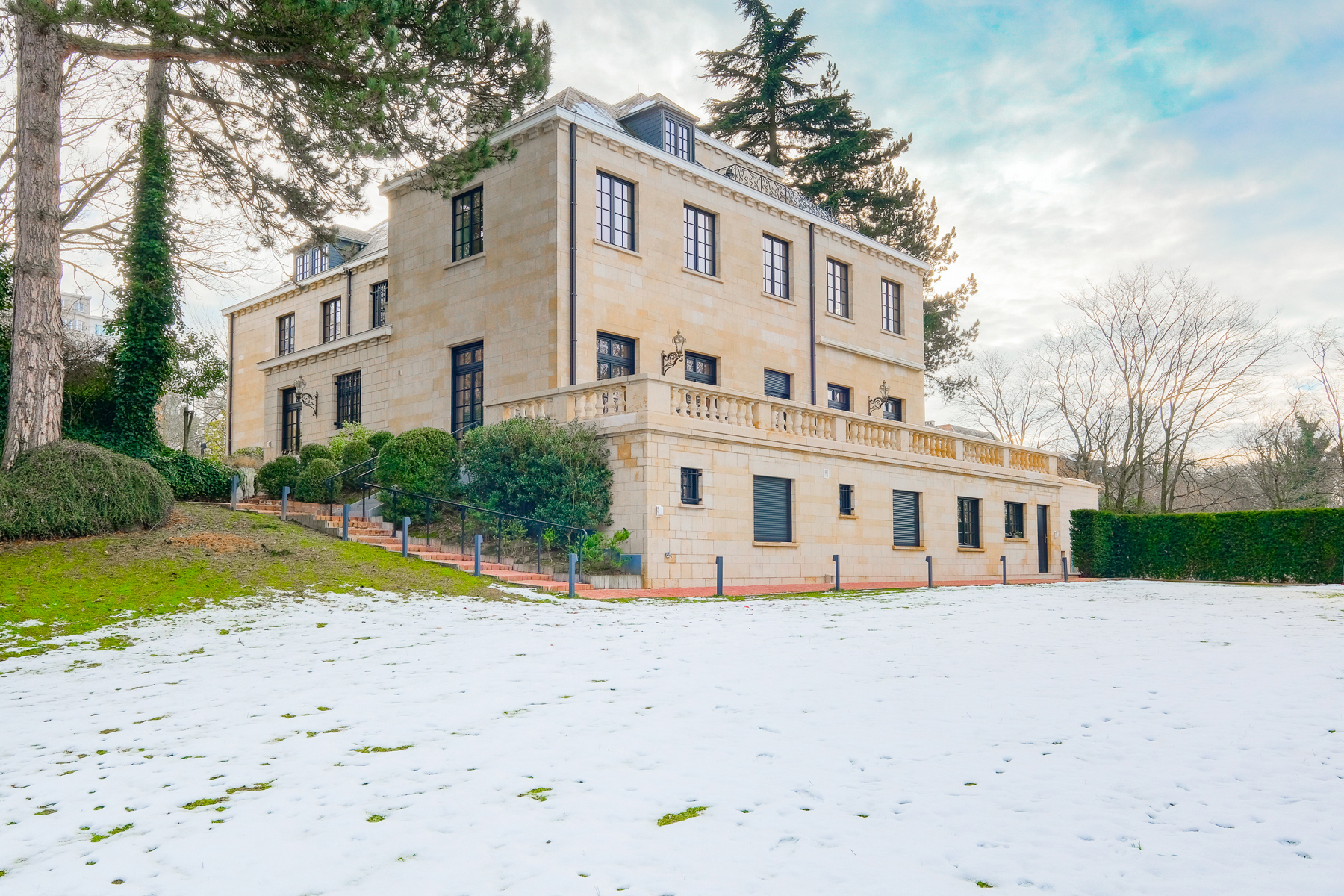 In the heart of the Altitude Cent district, this exceptional property combines elegance and refinement. Located near Avenue Molière and the Gare du Midi (Eurostar), it seduces with its strategic location and timeless architecture. Built in 1968 and renovated in 2019 by the 3ème architectural firm, this villa offers 1,291 m² (according to PEB) of gross surface area on a landscaped plot of 40 ares. From the entrance, the French stone façade sets the tone. The ceremonial hall, with its grand staircase, leads to refined reception areas, including a living room with wood paneling and fireplace, a bright dining room opening onto a panoramic terrace, as well as a semi-professional La Cornue kitchen. The upper floors house four bedrooms with private bathrooms and two sumptuous suites, ideal for entertaining or living in absolute luxury. The basement includes a sauna, a wine cellar, a garage for four vehicles and an independent space for staff. Outside, the wooded park hosts an 8 m x 15 m heated swimming pool with sauna and shower. This property, rare on the market, offers a peaceful and exclusive living environment in the heart of Brussels, meeting the highest expectations. PEB: E. Contact us for a private visit.