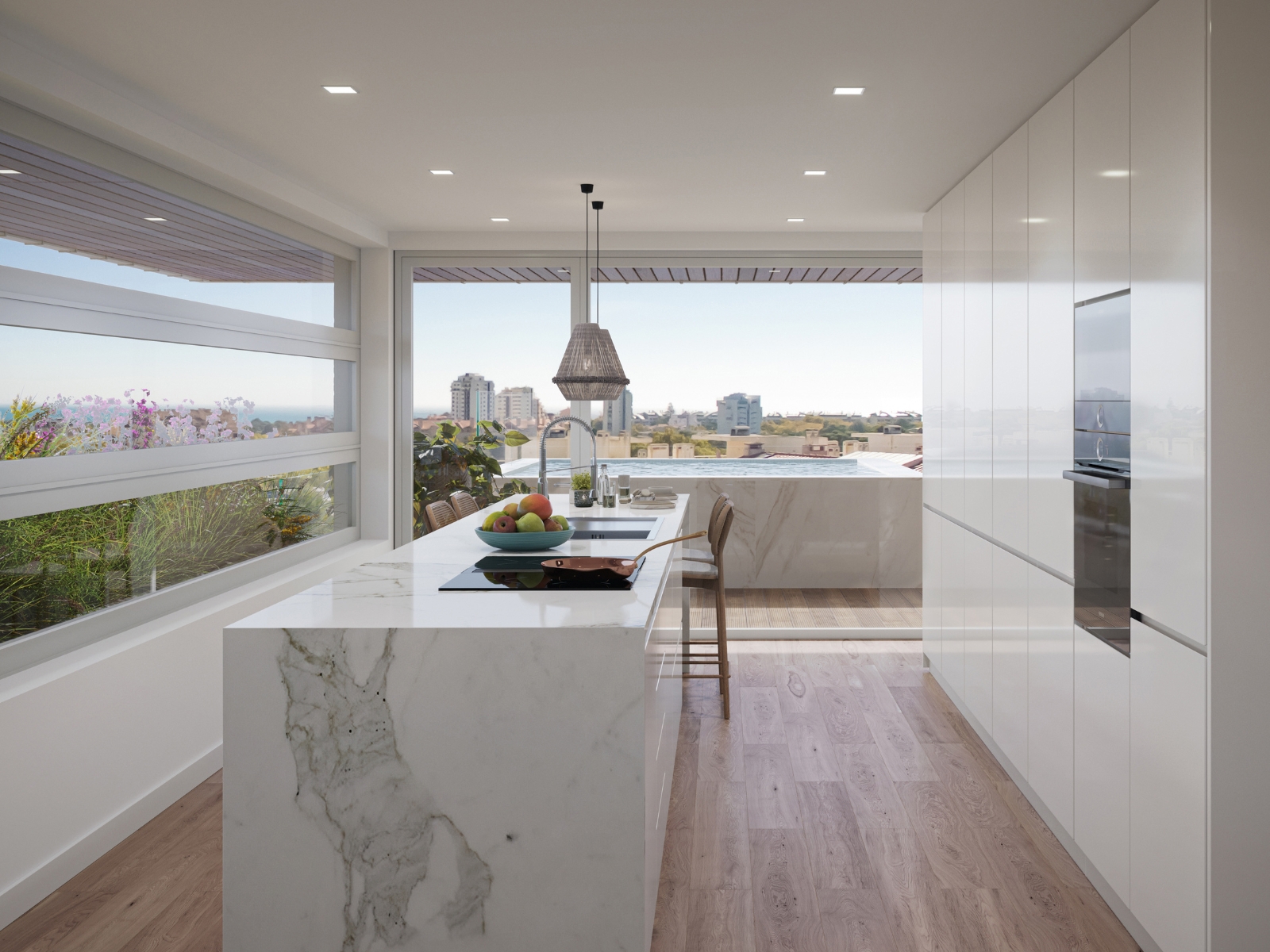 A fantastic 221 m² penthouse, offered by Bettencourt Real Estate, located in the Cascais Terraces development. It features a spacious 48 m² living room, a 24 m² open kitchen, and four en-suite bedrooms with private bathrooms and wardrobes. The 134 m² outdoor space includes large terraces, landscaped gardens, a private pool, and breathtaking sea and city views, with south-facing exposure. The property also includes three parking spaces and a storage room.