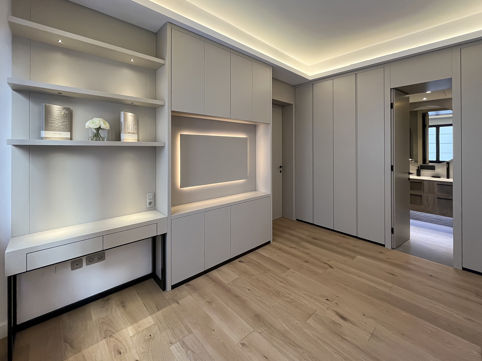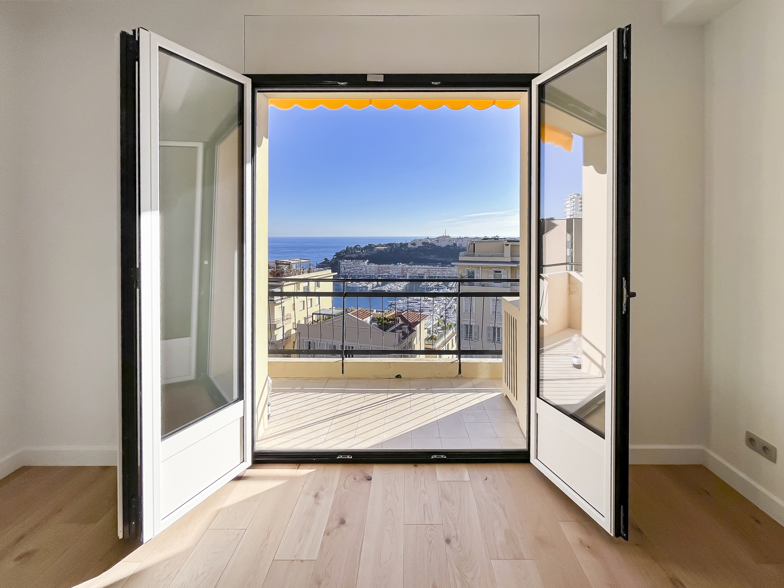 Located in the heart of the prestigious Monte-Carlo district, this elegant, fully renovated three-room apartment offers a unique living experience, combining refinement and modern comfort. With a total surface area of ​​80 m², including 75 m² of living space and a 5 m² terrace, this apartment stands out for its neat design and high-end services. As soon as you enter, you will be seduced by a spacious living room bathed in light, offering a panoramic view of the Mediterranean Sea and the Prince's Palace. The open kitchen, equipped with a central island, combines aesthetics and functionality, ideal for entertaining or cooking in a friendly atmosphere. The sleeping area includes two bedrooms, including a sumptuous master suite with adjoining bathroom, designed with high-quality materials. A second bathroom and guest toilet complete this layout designed for comfort and privacy. The apartment, located on the third floor of the Shakespeare building, benefits from a full southern exposure, guaranteeing exceptional brightness throughout the day. Its dominant position offers a breathtaking view of the port and the sea, while ensuring a rare calm in this lively area. Its privileged location in the immediate vicinity of the Carré d'Or, with its luxury boutiques, Michelin-starred restaurants and galleries, makes it an exceptional property for lovers of sophisticated urban life. Available immediately, this three-room apartment is a rare opportunity to acquire a turnkey apartment in one of the most sought-after addresses in Monaco. Contact Bettencourt Real Estate to arrange a private viewing and let yourself be seduced by this jewel of Monte-Carlo.