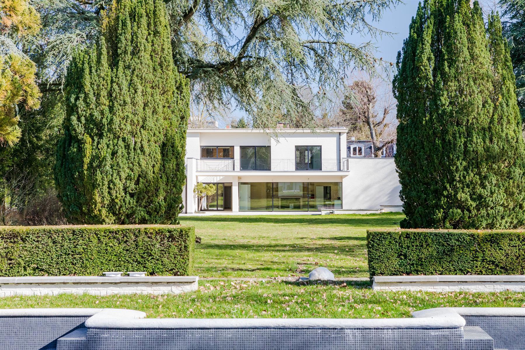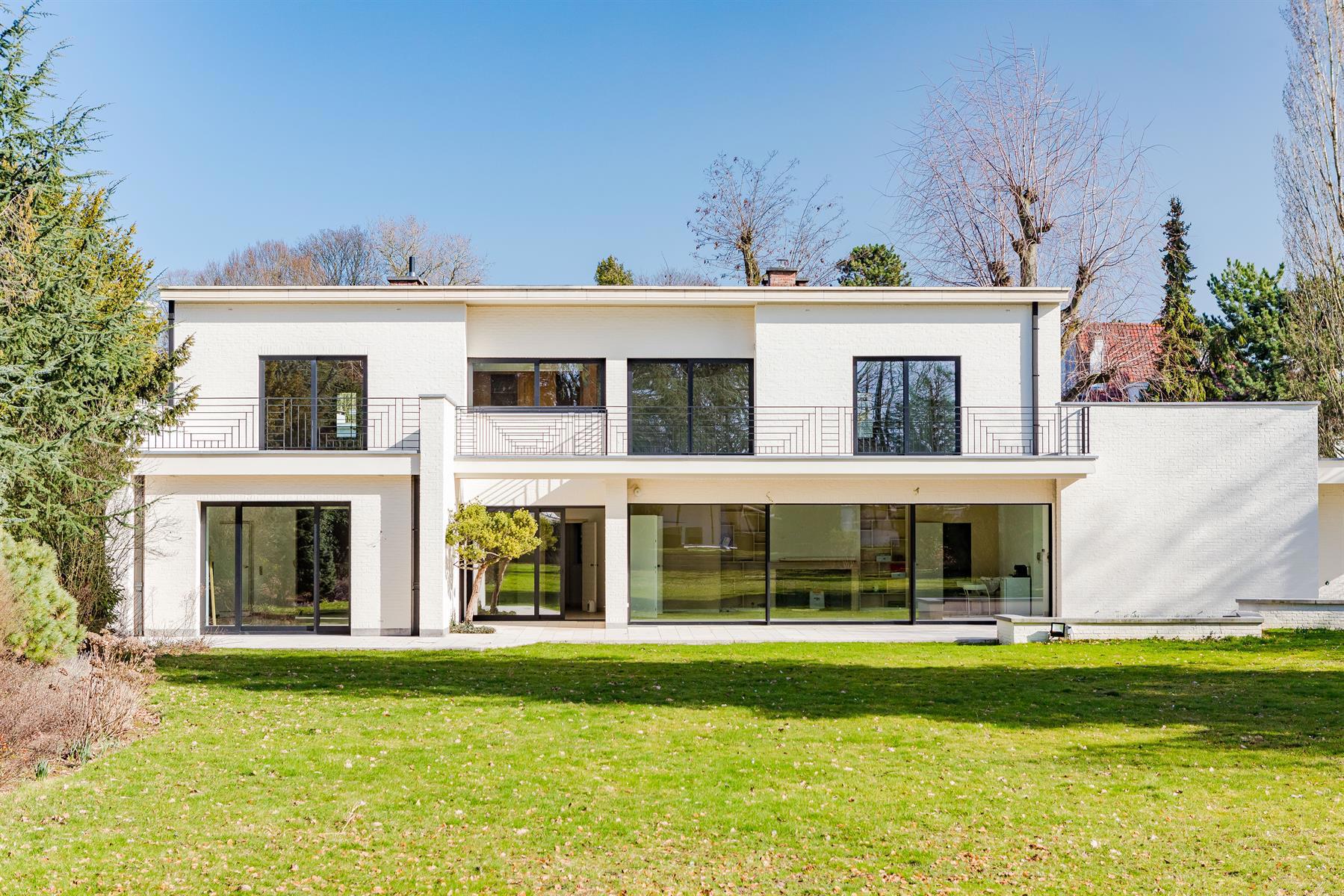 Ideally located on Avenue Leo Errera, in the immediate vicinity of the Bois de la Cambre and the food shops of the Brugmann district, this magnificent modernist-style villa, designed in 1955 by architect Jean E. Dumont, seduces with its blend of classic and Art Deco elements. Located on an exceptional plot of 50 ares without vis-à-vis, the property offers a unique family living environment. The living rooms, bathed in light thanks to generous volumes, open onto a sumptuous wooded garden facing southwest. The latter houses a 14 m² swimming pool with pool house, an orchard and a warehouse. A garage that can accommodate two vehicles, additional outdoor spaces and a concierge complete this exceptional property. The house, set back from the street, boasts timeless modernist architecture and a program that combines comfort and practicality. It has benefited from recent technical renovations, including the replacement of the frames with double glazing, a new boiler and the repair of the waterproofing of the terraces. Finishing touches remain to be carried out, thus offering the buyer the opportunity to personalize the spaces according to their tastes. An existing hopper also allows the installation of an elevator for greater comfort. The garden, a veritable green setting facing west, guarantees absolute privacy and is a rare asset. The swimming pool and its pool house give an additional dimension to this property, ideal for moments of relaxation and summer receptions. The Churchill-Floride district, renowned for its elegant streets, food shops and boutiques, benefits from a sought-after location, close to schools and public transport. This villa represents a unique opportunity to acquire a property with exceptional character in one of the most sought-after areas of Brussels.