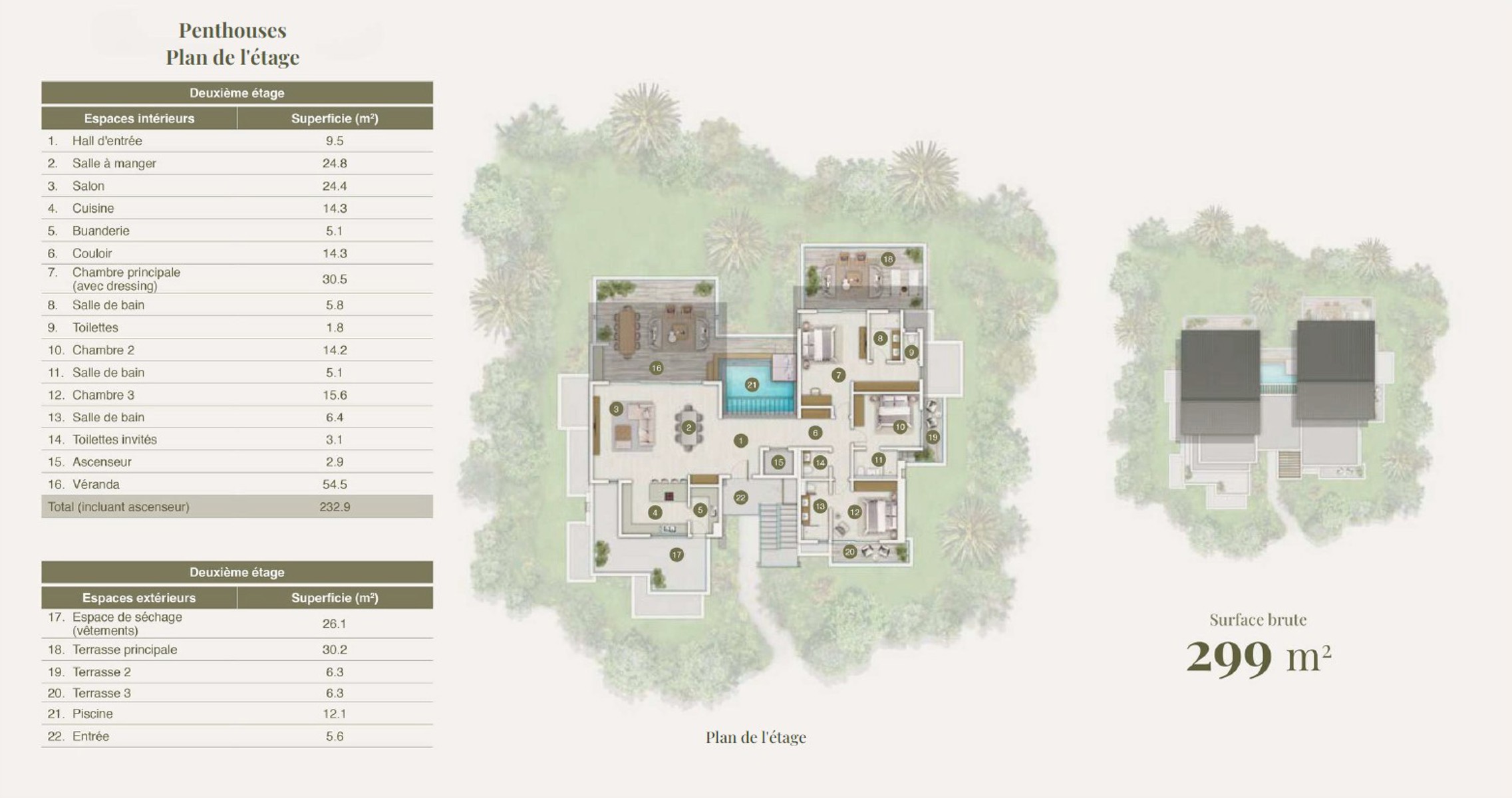 Anahita Beau Champ est un domaine résidentiel d’exception s’étendant sur 118 hectares, offrant un équilibre parfait entre nature préservée et commodités modernes. Son architecture inspirée du style mauricien s’intègre harmonieusement dans un cadre verdoyant et apaisant. Les résidents bénéficient d’un accès facile aux commerces, espaces de coworking, restaurants et infrastructures sportives, tout en étant à proximité du lagon et de deux parcours de golf de renommée mondiale. Les villas Demera Signature incarnent un art de vivre élégant et authentique. Construites avec des matériaux naturels tels que la pierre et le bois, elles privilégient des espaces ouverts, une luminosité naturelle abondante et une circulation fluide entre intérieur et extérieur. D’une superficie brute de 356 m², elles offrent trois chambres en suite, un vaste salon s’ouvrant sur une terrasse aménagée et une piscine entourée de jardins tropicaux luxuriants. Seulement cinq unités sont disponibles, garantissant un cadre exclusif et intime. Les appartements de L’Écho des Champs, répartis en résidences de cinq unités, allient confort moderne et charme architectural. Disponibles en configurations de deux à trois chambres, ils offrent des volumes généreux et des finitions soignées. Les penthouses, avec leurs vues imprenables et leurs brises-soleil en bois, ajoutent une touche de raffinement et d’intimité à cet ensemble résidentiel pensé pour le bien-être.