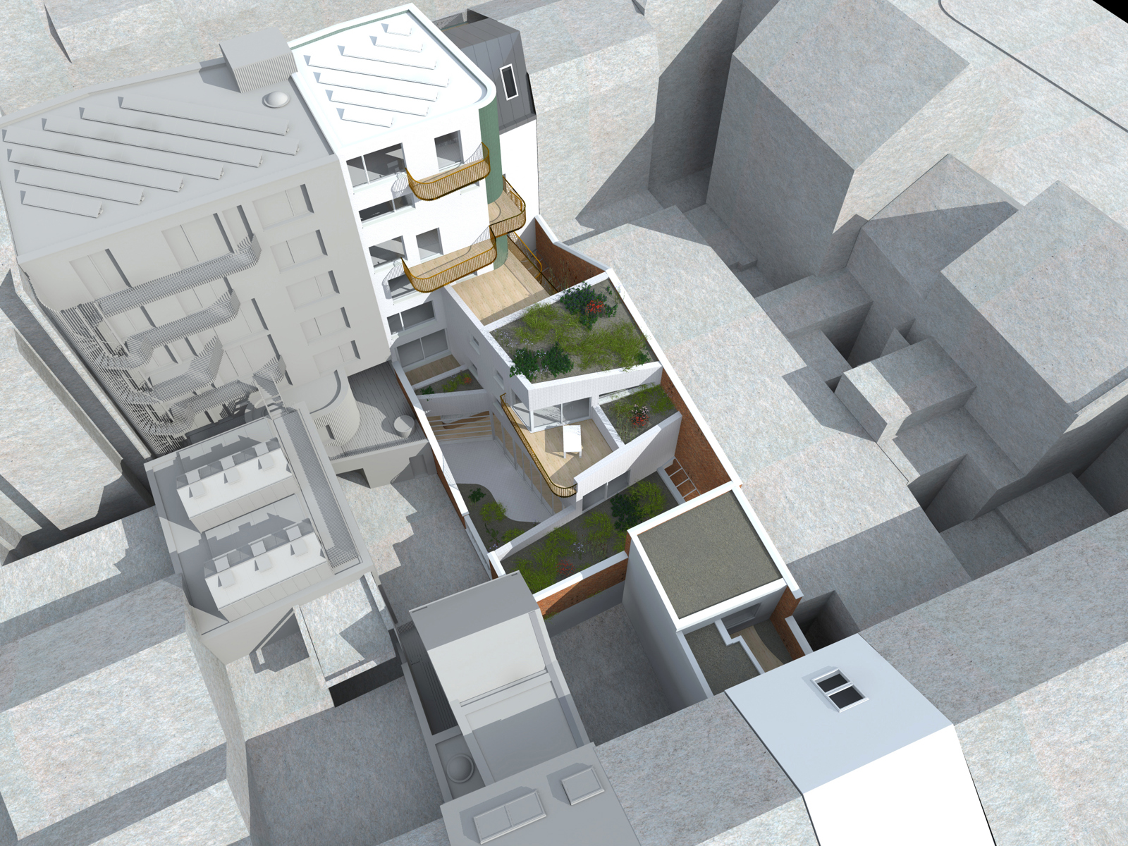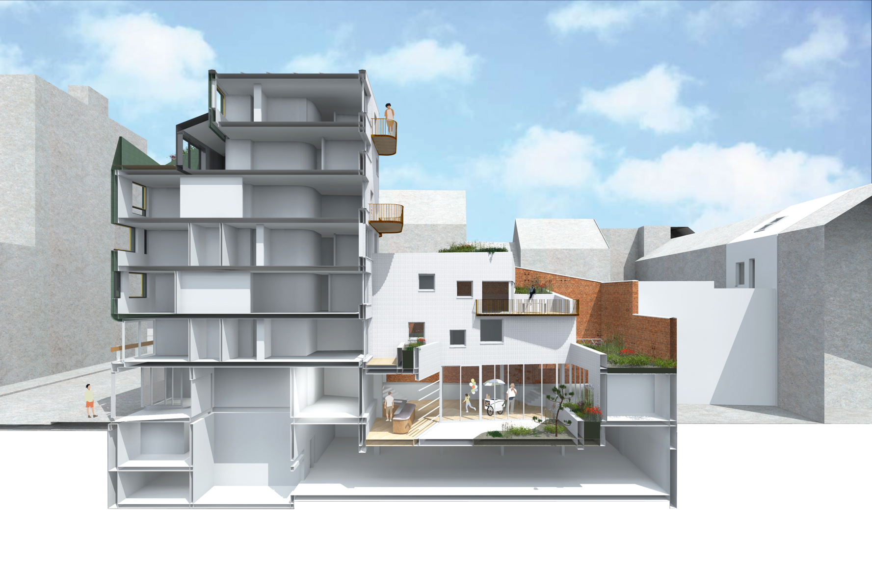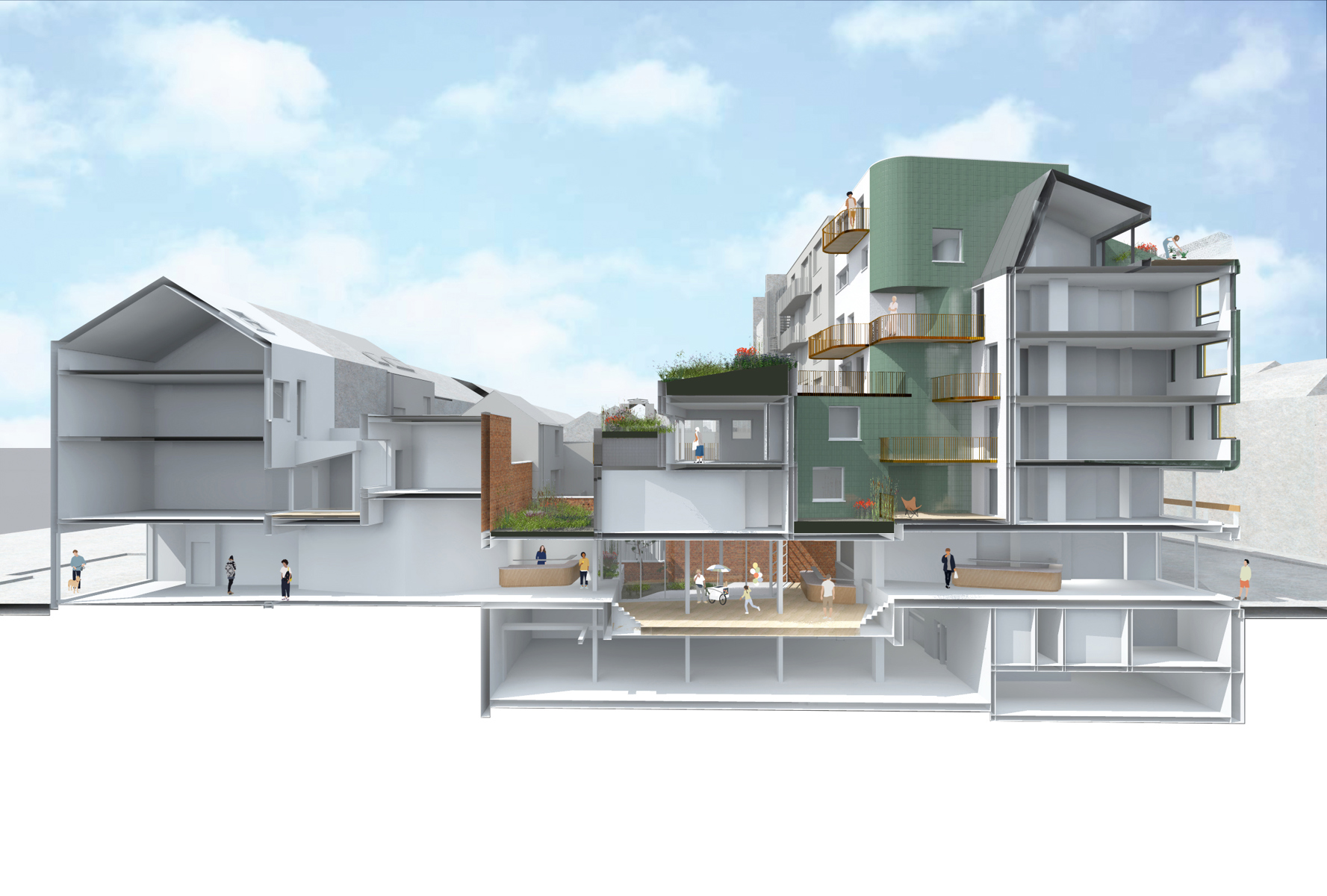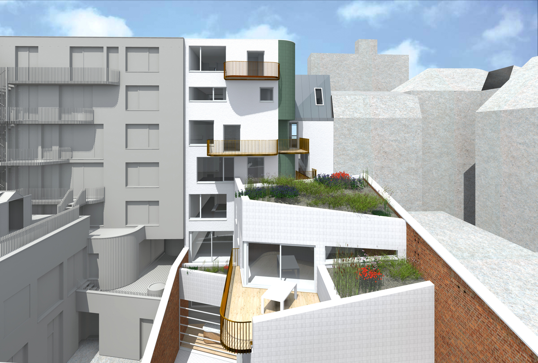 Ce projet propose 15 appartements contemporains, idéalement situés dans la Ville Haute de Charleroi. Avec 990 m² de surfaces habitables, ces unités sont parfaitement adaptées aux investisseurs recherchant des opportunités de location avec des rendements attractifs ou aux particuliers souhaitant acquérir un bien dans un quartier en plein essor. Chaque logement bénéficie d’espaces extérieurs privatifs tels que terrasses et jardins suspendus, tandis que le projet intègre également des toitures végétalisées, offrant un cadre de vie durable et agréable. En complément, un espace commercial de 355 m², idéal pour un Food Court, renforcera l’attractivité du site et participera à la dynamique urbaine du quartier, déjà marqué par sa richesse culturelle.