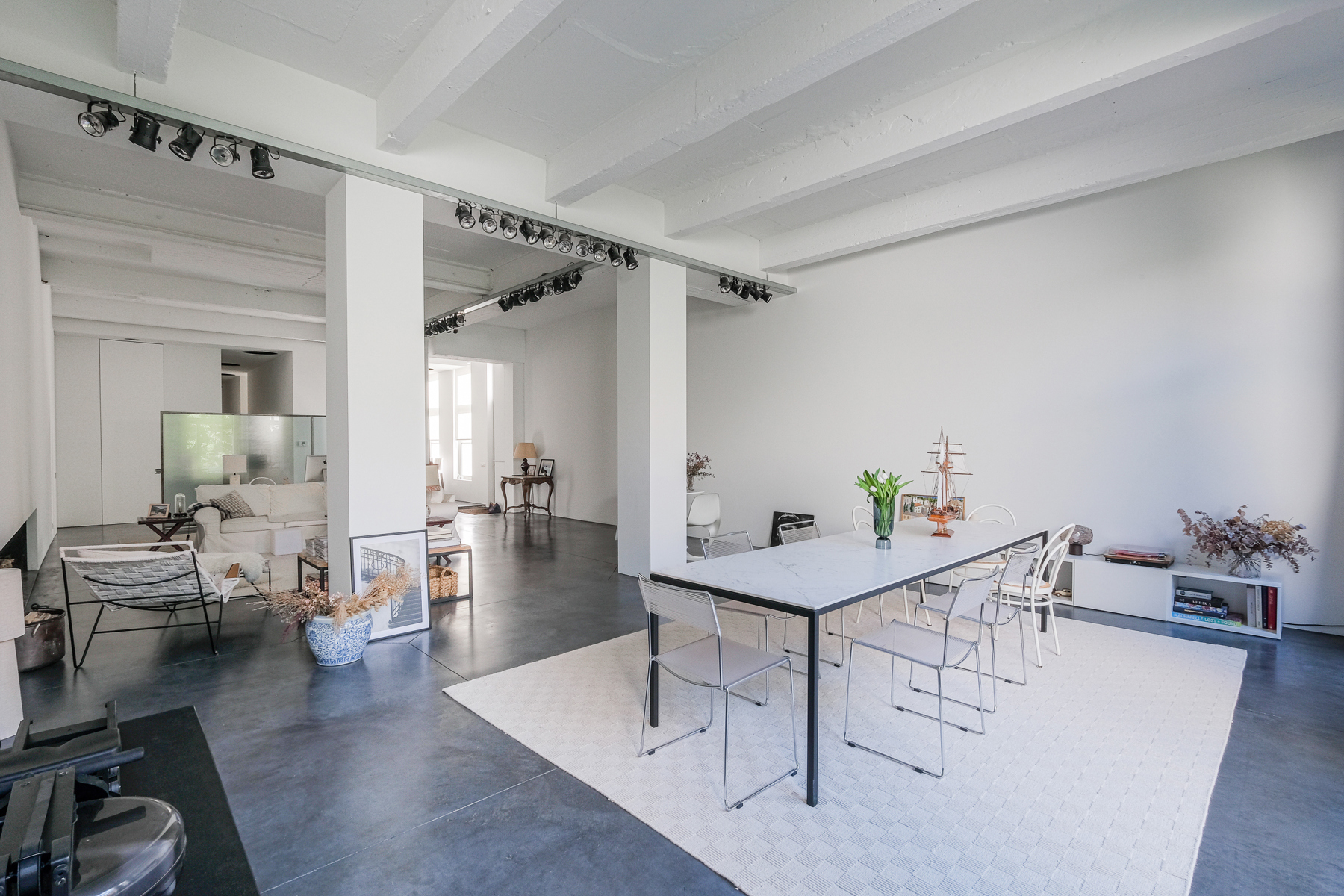 Op een steenworp van de NAVO en de Europese instellingen, bevindt deze unieke loft zich in de begeerde wijk Diamant/Plasky. Het pand combineert royale volumes, moderne lijnen en het karakter van een voormalige drukkerij die in 2005 met zorg werd gerenoveerd. Een binnenhuisarchitect richtte deze loft met smaak en verfijning in, met oog voor detail en comfort. De leefruimte van ±110 m², georiënteerd op het zuidwesten, baadt in natuurlijk licht en biedt een uitzonderlijke plafondhoogte en een open haard. De loft beschikt over twee slaapkamers, waaronder een master suite met badkamer (ligbad en douche), een tweede doucheruimte, een volledig uitgeruste open keuken, een gastentoilet, een wasruimte en een berging. Vloerverwarming en elektrische installatie conform. Buiten biedt een privétuin met terras een oase van rust in de stad. De loft maakt deel uit van de residentie "Les Imprimeries", een exclusieve verzameling van 7 lofts rond een groene binnentuin. Een overdekte parkeerplaats met oplaadpunt voor elektrische voertuigen vervolledigt dit zeldzame pand. Extra troef: slechts 10 minuten van de luchthaven. De wijk Plasky biedt een ruim aanbod aan winkels, restaurants en cafés in een rustige, groene omgeving.