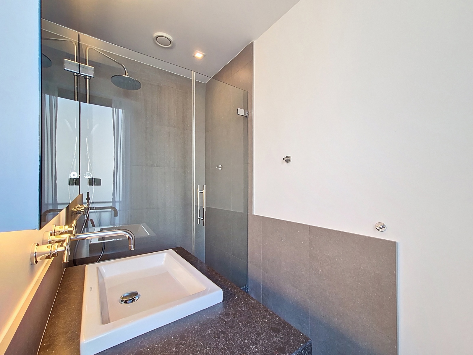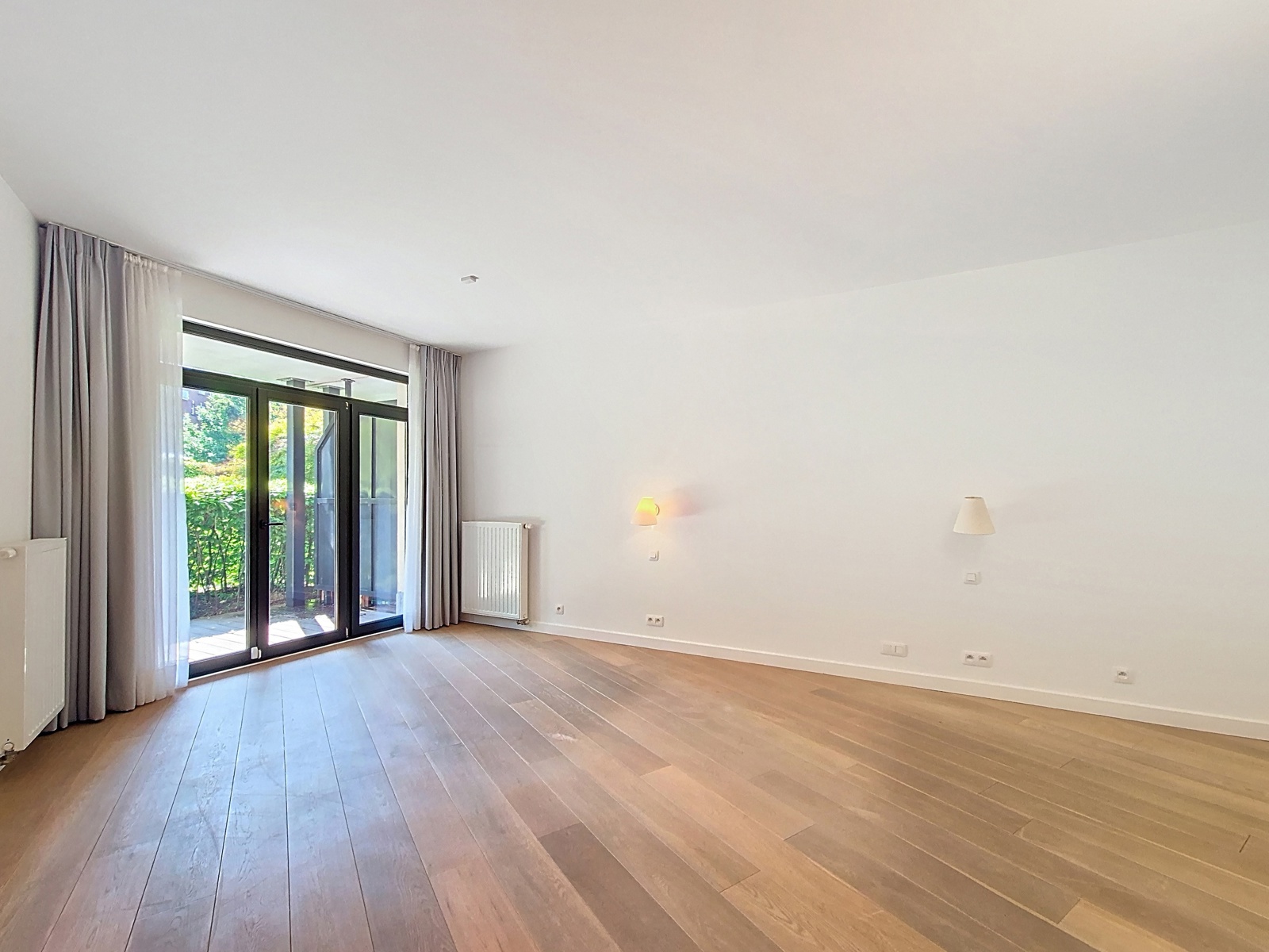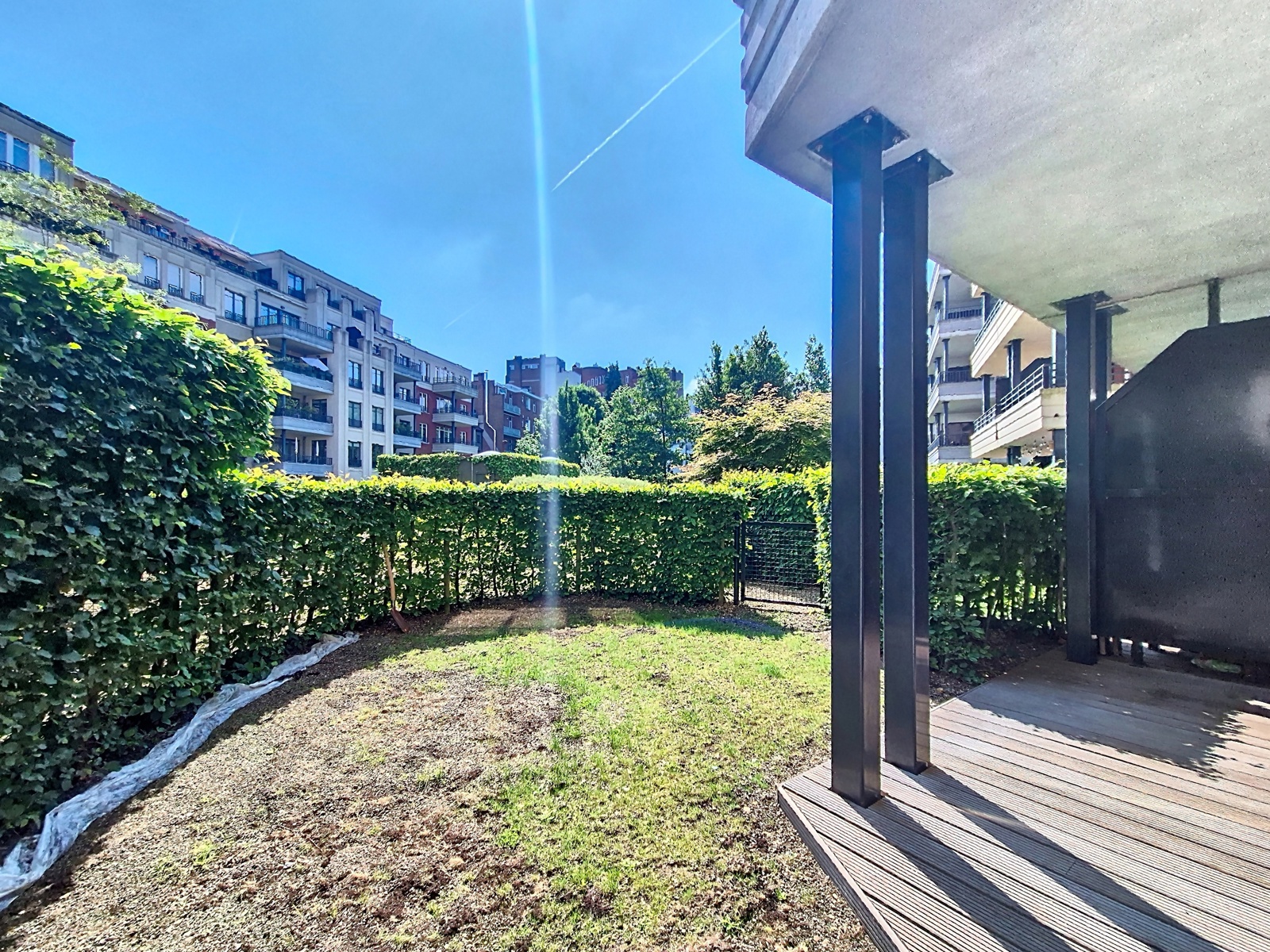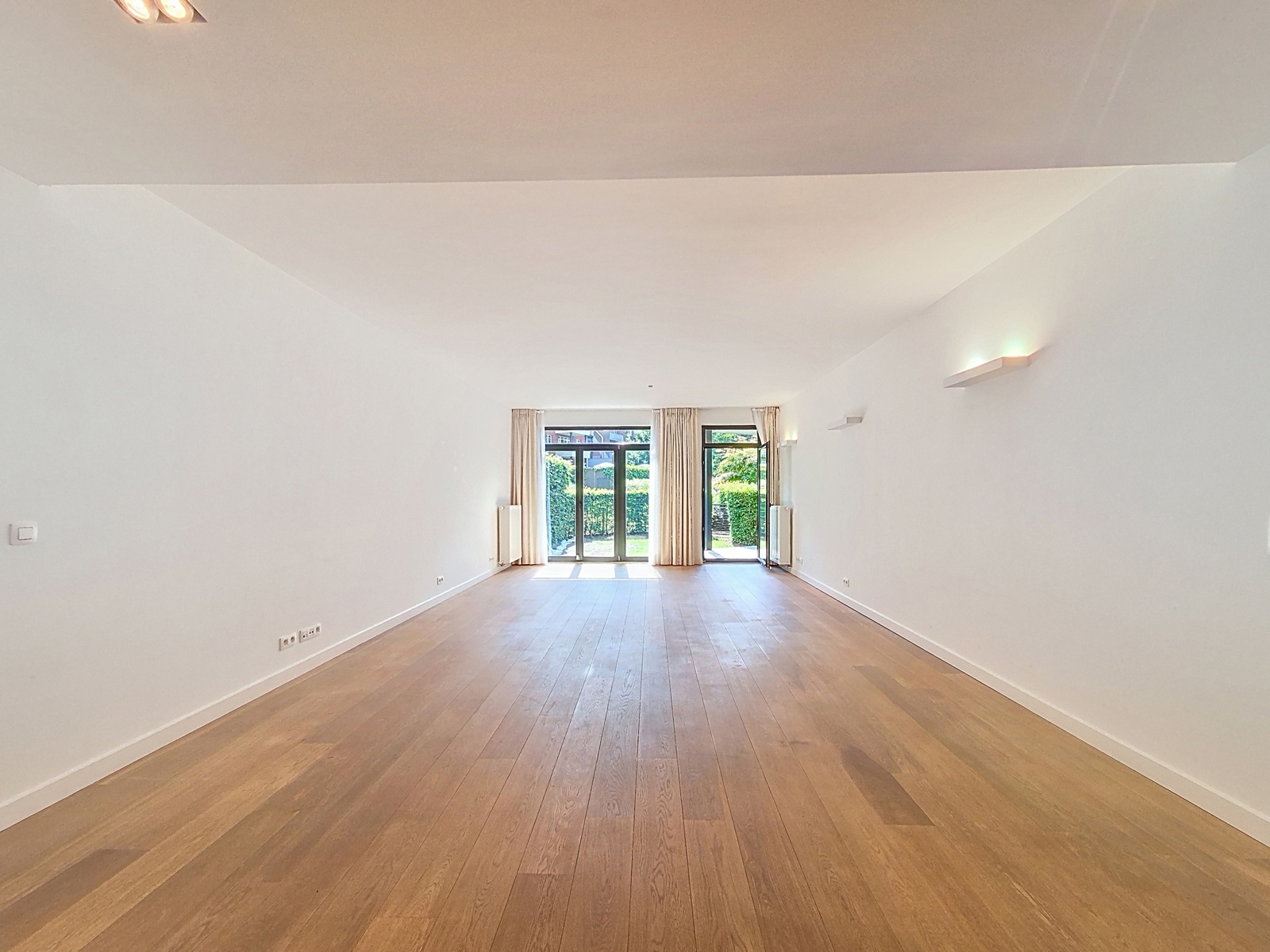 Brugmannplein – Uitzonderlijk adres en privétuin in de residentie Brugmann Court In het hart van één van de meest elegante en gewilde wijken van Brussel, ligt dit gelijkvloersappartement van ± 216 m² in de zeer gewilde residentie Brugmann Court, direct grenzend aan het Brugmannplein, een waar architectonisch juweeltje en verfijnde woonruimte. Deze woonwijk is aantrekkelijk vanwege de dorpse sfeer, kwalitatieve winkels, kunstgalerieën, gezellige terrasjes en de directe nabijheid van gerenommeerde scholen en het openbaar vervoer. Vanaf de entree maakt het appartement indruk door zijn ruimte en de kwaliteit van de afwerking. Via de hal met garderobe en gastentoilet komt u in een grote, lichtrijke leefruimte met een salon, een eetkamer en een perfect uitgeruste Amerikaanse keuken met kookeiland. Een achterkantoor/wasruimte maakt de ruimte compleet. Het geheel komt uit op een intiem terras, uitgebreid met een privétuin van ± 38 m² en directe toegang tot de gemeenschappelijke tuin van het blok. Het slaapgedeelte bestaat uit een master suite met terras, ingebouwde kleedkamer en complete badkamer, en daarnaast nog twee slaapkamers, elk met een kleedkamer en een eigen doucheruimte. Bijzonderheden: massief parketvloer, individuele gasverwarming, dubbele ventilatie, alarmsysteem, eigen kelder, conciërge. Mogelijkheid om maximaal 4 parkeerplaatsen te huren tegen een meerprijs. Gemeenschappelijke kosten: €400/maand. PEB: C+ Een zeldzame kans in een karakteristieke wijk die rust, elegantie en levenskunst combineert.