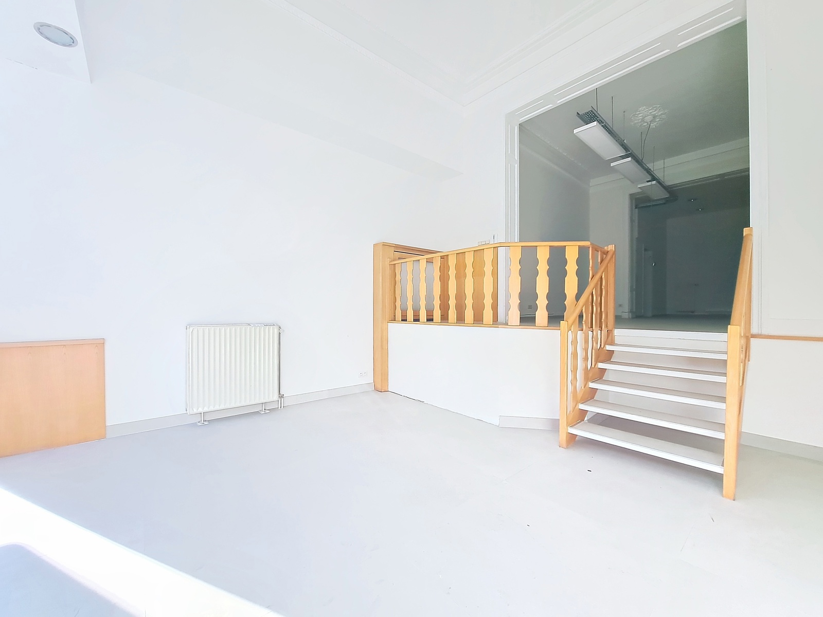 Dit commerciële pand van 85 m² is ideaal gelegen aan de Brugmannlaan en biedt een uitzonderlijke zichtbaarheid dankzij het grote voorraam. Het is perfect geschikt voor een bedrijfs- of professionele ruimte en profiteert van een strategische locatie in het hart van een levendige, gewilde wijk. Het onlangs opnieuw geschilderde pand bestaat uit een lichte, functionele hoofdruimte van 85 m², ideaal om je producten te presenteren of een uitnodigende omgeving voor je klanten te creëren. Daarnaast is er een grote opslagruimte van 90 m² om uw organisatie te optimaliseren en royale opslagcapaciteit te bieden. Te huur aangeboden voor €2.100 per maand, is dit een zeldzame kans om je bedrijf te ontwikkelen in een dynamische en aantrekkelijke omgeving. Wacht niet langer om een kijkje te nemen in dit commerciële pand met zijn verzorgde inrichting en onmiskenbaar potentieel!