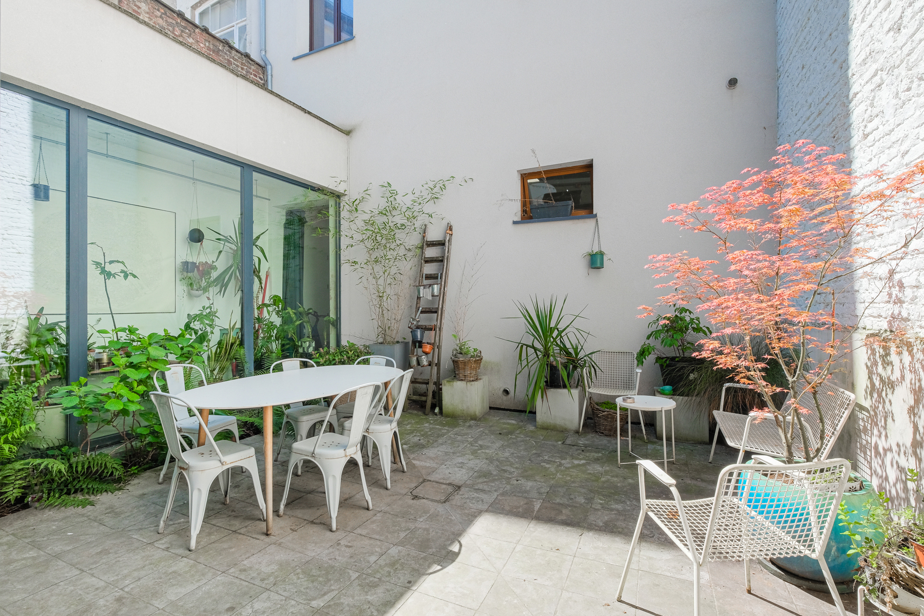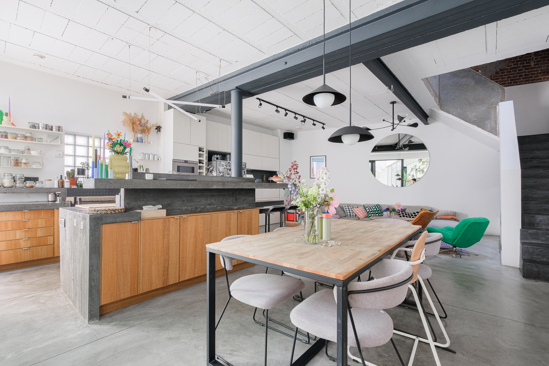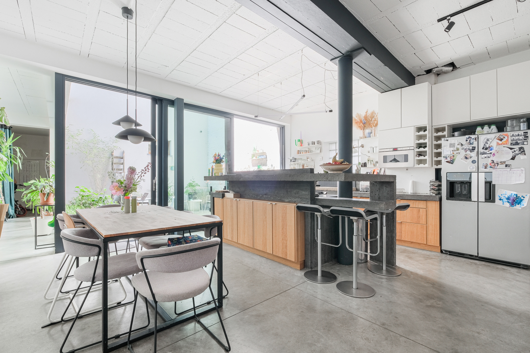 Huis te huur in Sint-Gillis – gemeubileerd of ongemeubileerd beschikbaar, afhankelijk van de wensen.. Ontdek dit charmante, door een architect ontworpen huis aan de achterzijde van een gebouw, dat in 2011 werd omgebouwd tot een zorgvuldig gerenoveerde voormalige drukkerij. Het is ontworpen in industriële loftstijl en biedt ± 212 m² woonoppervlak, uitgebreid met twee terrassen van ± 25,6 m² en ± 9 m². De volumes zijn indrukwekkend: plafonds van 3 meter hoog, ruwe en elegante materialen (geglad beton, ingebouwde keuken op maat) zorgen voor een sfeer die zowel verfijnd als warm is. De lichte woonkamer komt uit op een groot, vlak terras, ideaal voor zomeravonden. Aan de nachtzijde bevinden zich drie grote slaapkamers, waaronder een master suite op de 2e verdieping met doucheruimte, kleedkamer en eigen terras. De twee andere slaapkamers op de eerste verdieping hebben een extra badkamer. Technisch aspect: vloerverwarming, gasketel, dubbele stroomventilatie, zonnepanelen voor warm water, dubbel glas, extra isolatie en de mogelijkheid om een ​​houtkachel te installeren voor een nog gezelligere sfeer. Geen kelder, maar een optimale indeling. Onlangs gerenoveerde gemeenschappelijke ruimtes, zeer lage mede-eigendomskosten. Een zeldzaam, rustig en karaktervol pand. PEB: C.