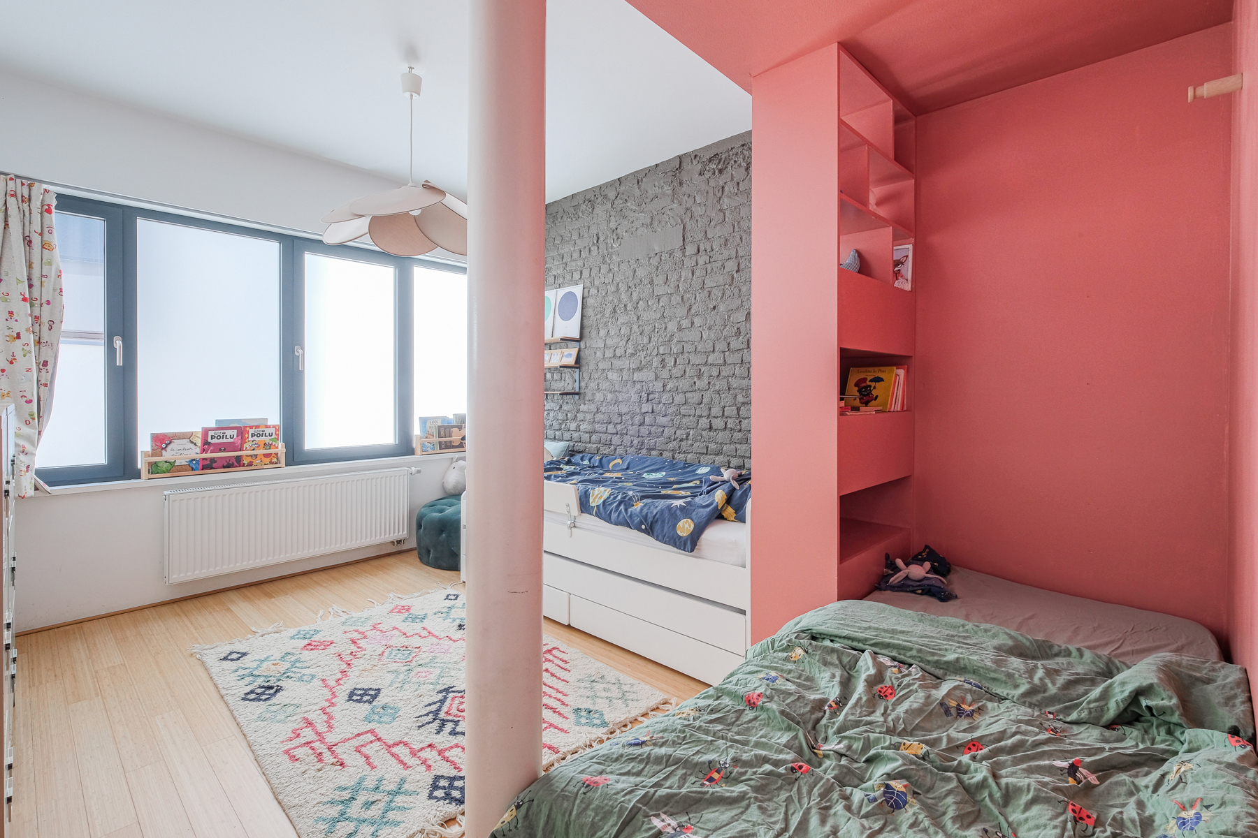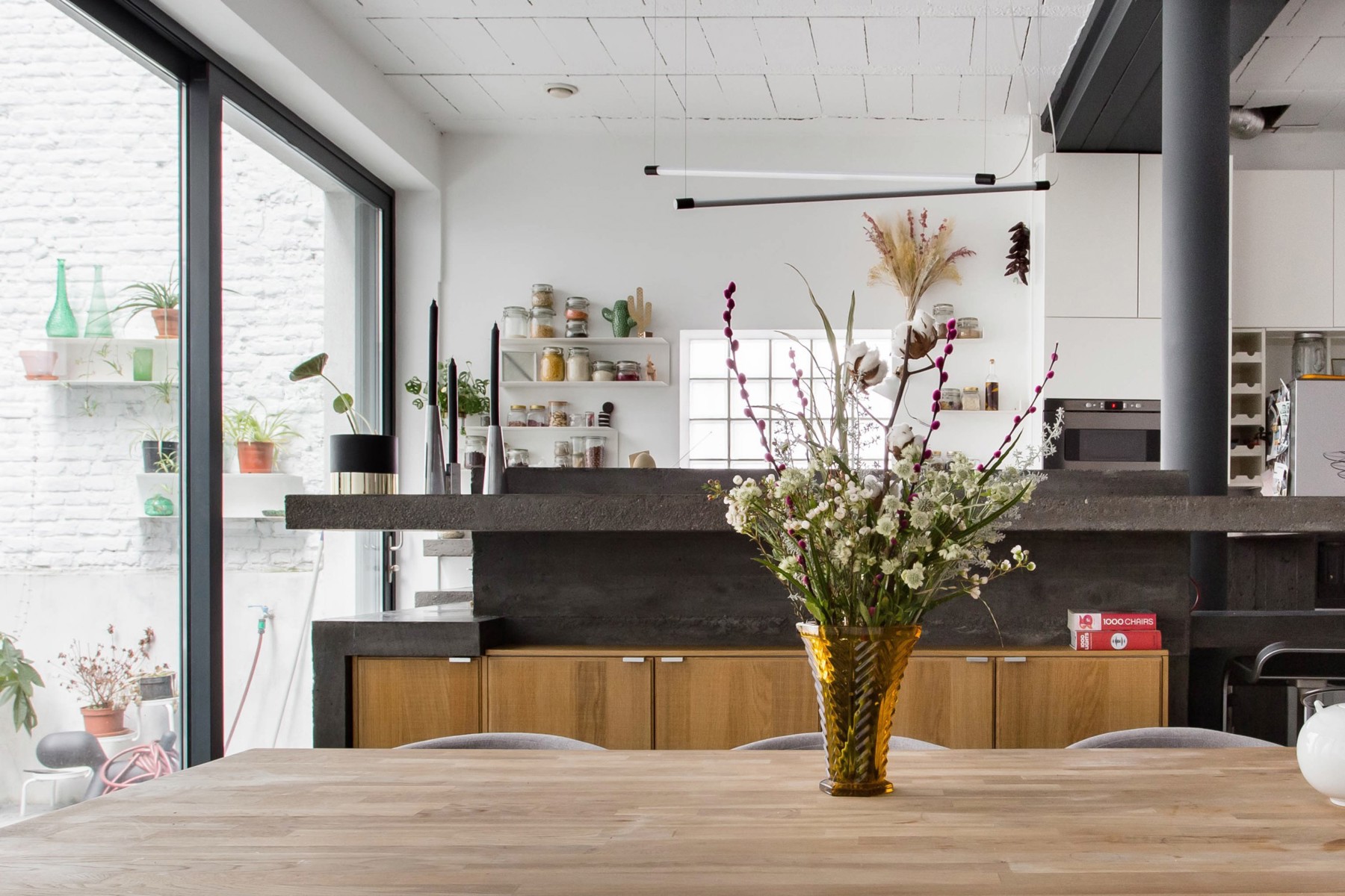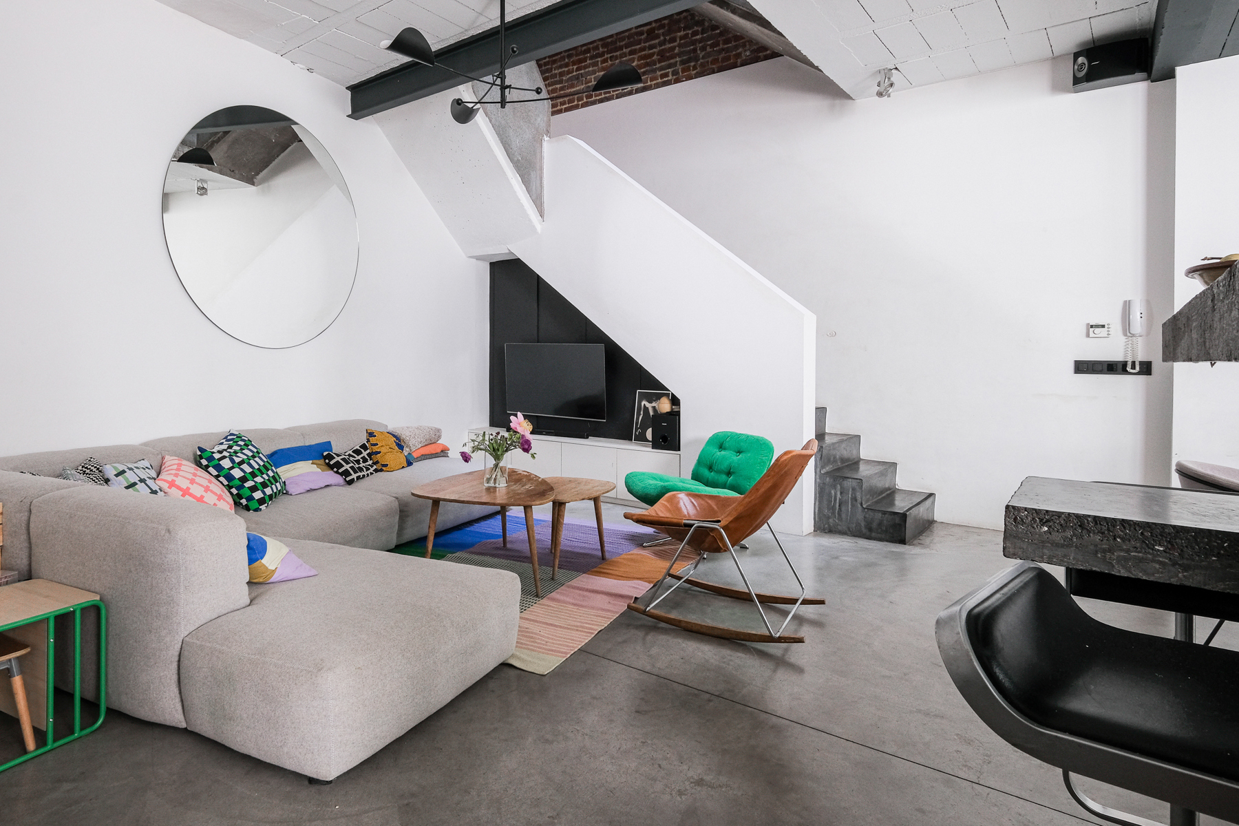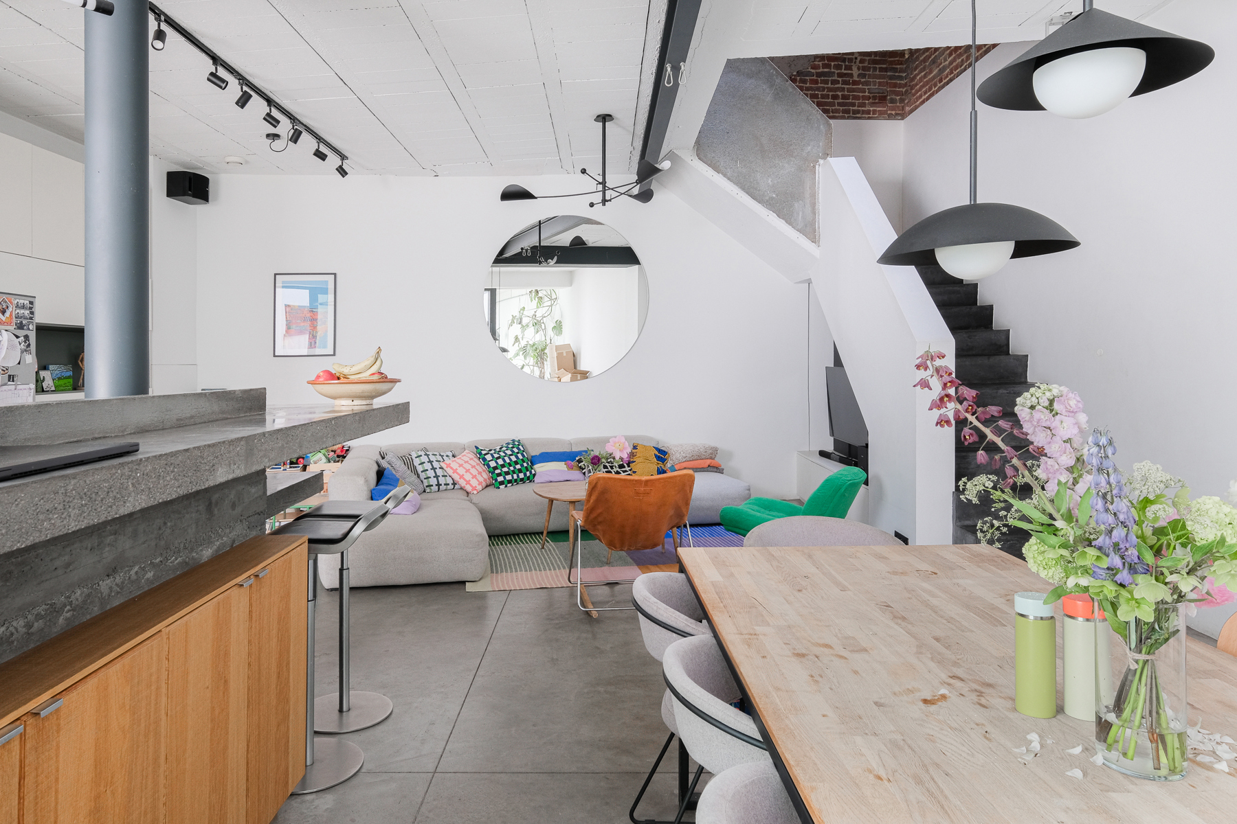 Huis te huur in Sint-Gillis – gemeubileerd of ongemeubileerd beschikbaar, afhankelijk van de wensen.. Ontdek dit charmante, door een architect ontworpen huis aan de achterzijde van een gebouw, dat in 2011 werd omgebouwd tot een zorgvuldig gerenoveerde voormalige drukkerij. Het is ontworpen in industriële loftstijl en biedt ± 212 m² woonoppervlak, uitgebreid met twee terrassen van ± 25,6 m² en ± 9 m². De volumes zijn indrukwekkend: plafonds van 3 meter hoog, ruwe en elegante materialen (geglad beton, ingebouwde keuken op maat) zorgen voor een sfeer die zowel verfijnd als warm is. De lichte woonkamer komt uit op een groot, vlak terras, ideaal voor zomeravonden. Aan de nachtzijde bevinden zich drie grote slaapkamers, waaronder een master suite op de 2e verdieping met doucheruimte, kleedkamer en eigen terras. De twee andere slaapkamers op de eerste verdieping hebben een extra badkamer. Technisch aspect: vloerverwarming, gasketel, dubbele stroomventilatie, zonnepanelen voor warm water, dubbel glas, extra isolatie en de mogelijkheid om een ​​houtkachel te installeren voor een nog gezelligere sfeer. Geen kelder, maar een optimale indeling. Onlangs gerenoveerde gemeenschappelijke ruimtes, zeer lage mede-eigendomskosten. Een zeldzaam, rustig en karaktervol pand. PEB: C.
