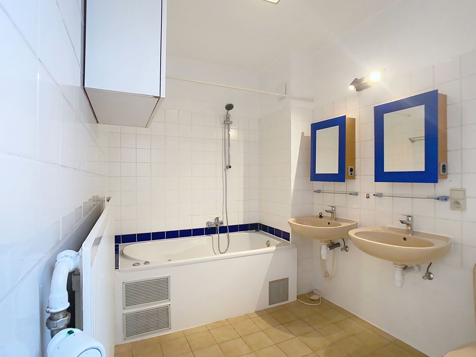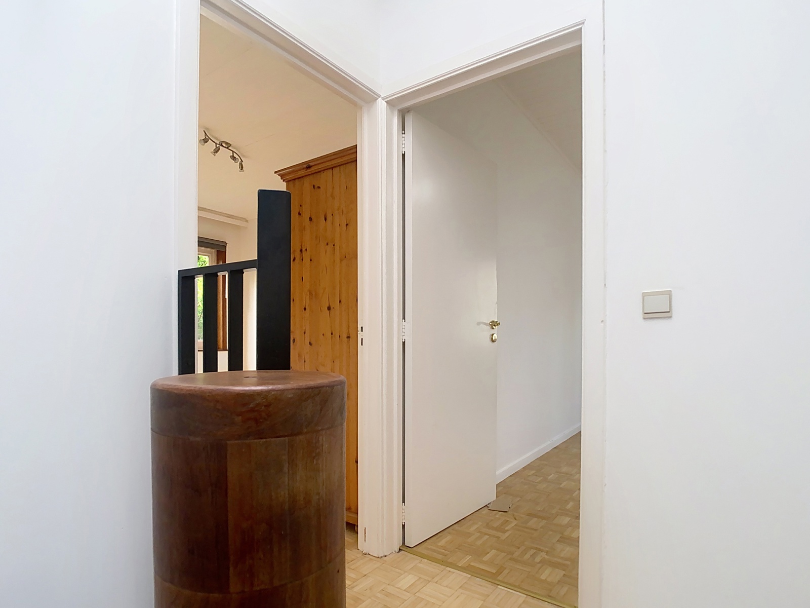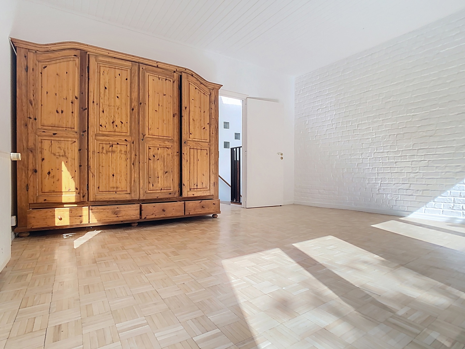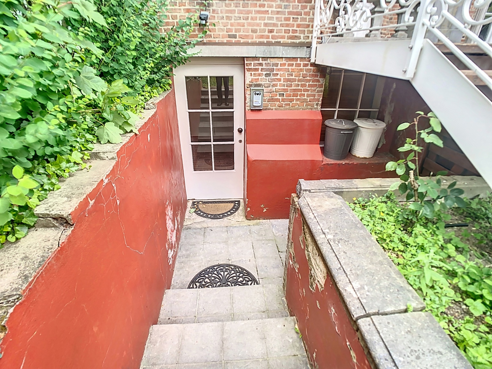 Licht huis met 2 slaapkamers in een rustige omgeving met een grote tuin, gelegen aan een eenrichtingsstraat in Watermaal-Bosvoorde. Toegang tot het huis via een gesloten privé ondergrondse doorgang die rechtstreeks naar het binnenhof leidt. Een luifel beschermt een klein op het zuiden gelegen terras voor de ingang van het huis. Het huis is verdeeld over 2 niveaus met een keuken, woonkamer, toilet en technische ruimte op de begane grond. Boven zijn er 2 grote slaapkamers van 20 m2 met parket en 1 badkamer met toilet. Het geheel is zeer licht dankzij de ramen die uitzicht bieden op de groene ruimtes en een koepel die zonlicht laat binnenvallen boven de trap. Keymplein, scholen en het station van Boitsfort zijn slechts 10 minuten te voet. Ideaal voor een gezin of een gedeeld appartement voor twee!
