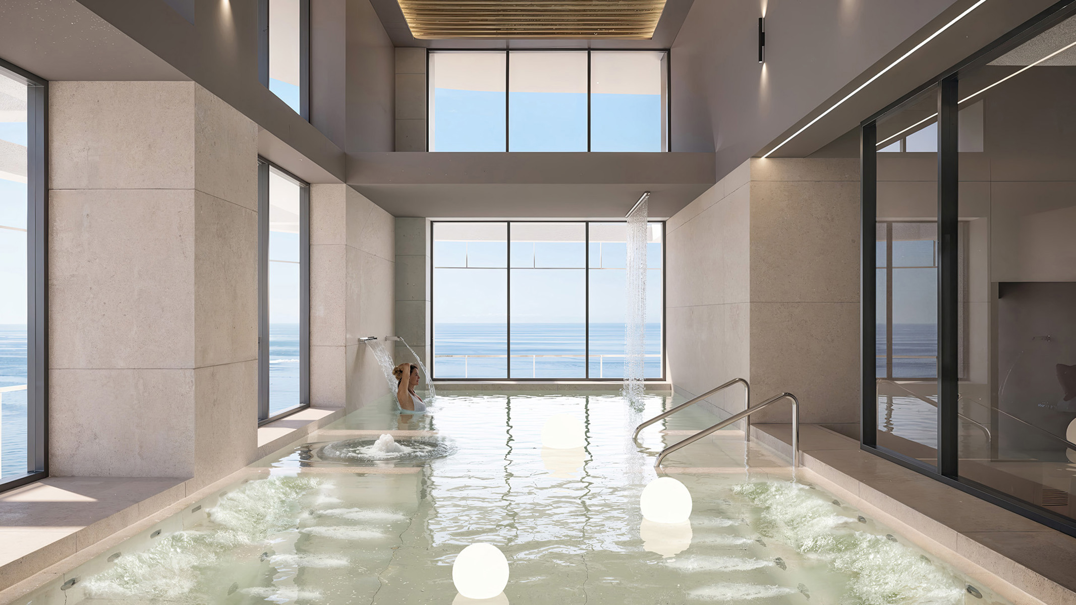 De gemeenschappelijke ruimtes omvatten meerdere buitenzwembaden (hoofd-, verwarmd en kinderbad), een volledige Spa & Wellness met jacuzzi, sauna, stoombad, zintuiglijke douches en massageruimtes, een panoramische fitnessruimte, yogatuin, kinderclub, coworkingruimte, bioscoopzaal, skybar op de 63e verdieping en een sterrenwacht.