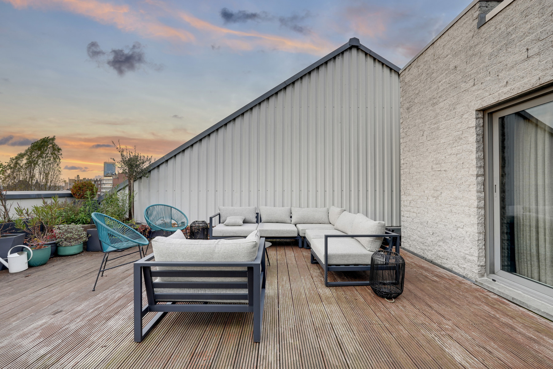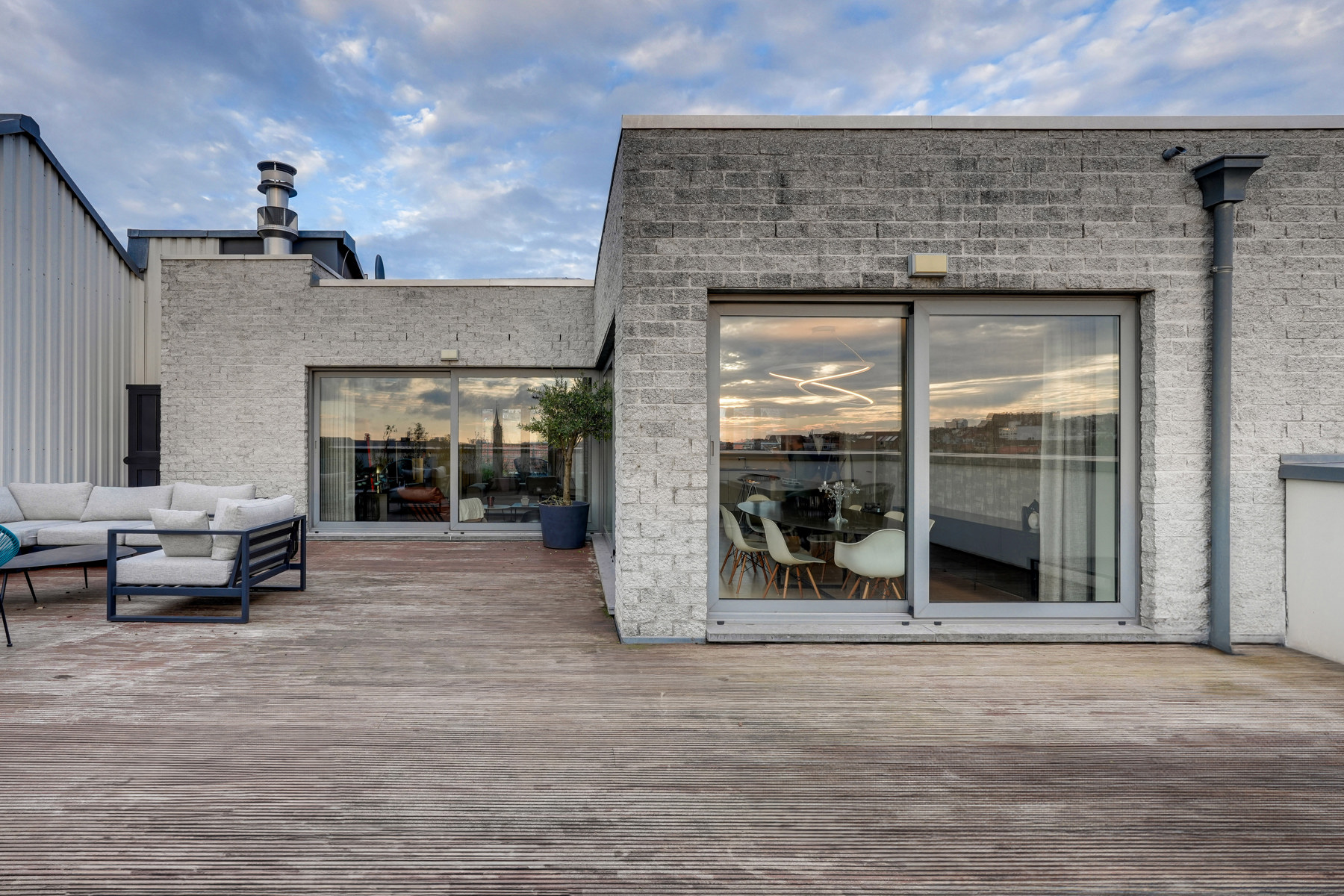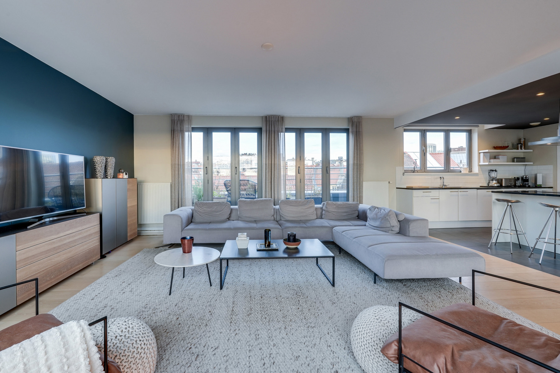 Dit prachtige penthouse van 185 m² (1060 St Gilles), versterkt met 90 m² terrassen, zal u betoveren met zijn charme en verfijning. Dit uitzonderlijke pand biedt een adembenemend panoramisch uitzicht over de stad Brussel en valt op door zijn betoverende omgeving en zijn lichte ruimtes. De royale ontvangstruimte van 80 m² komt sierlijk uit op twee grote terrassen, overspoeld met natuurlijk licht, waardoor een sfeer van rust en welzijn ontstaat. Daar vindt u drie elegante slaapkamers, twee verfijnde badkamers, drie toiletten en een wasruimte. De toegang is volledig privé dankzij een speciale lift. Dit juweeltje omvat ook een parkeerplaats (+40.000€) met een laadstation voor elektrische voertuigen, evenals een beveiligde kelder van 40 m² met gepantserde deur. Dit uitzonderlijke penthouse belichaamt luxe in zijn puurste vorm. Een bezoek is essentieel voor liefhebbers van zeldzame en prestigieuze goederen.