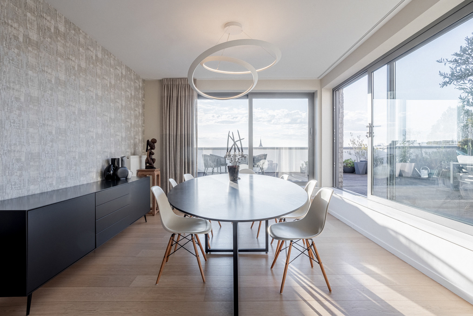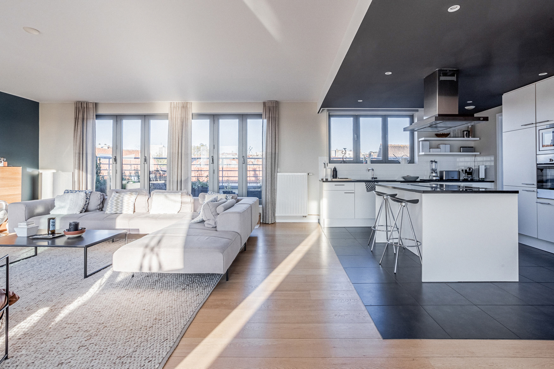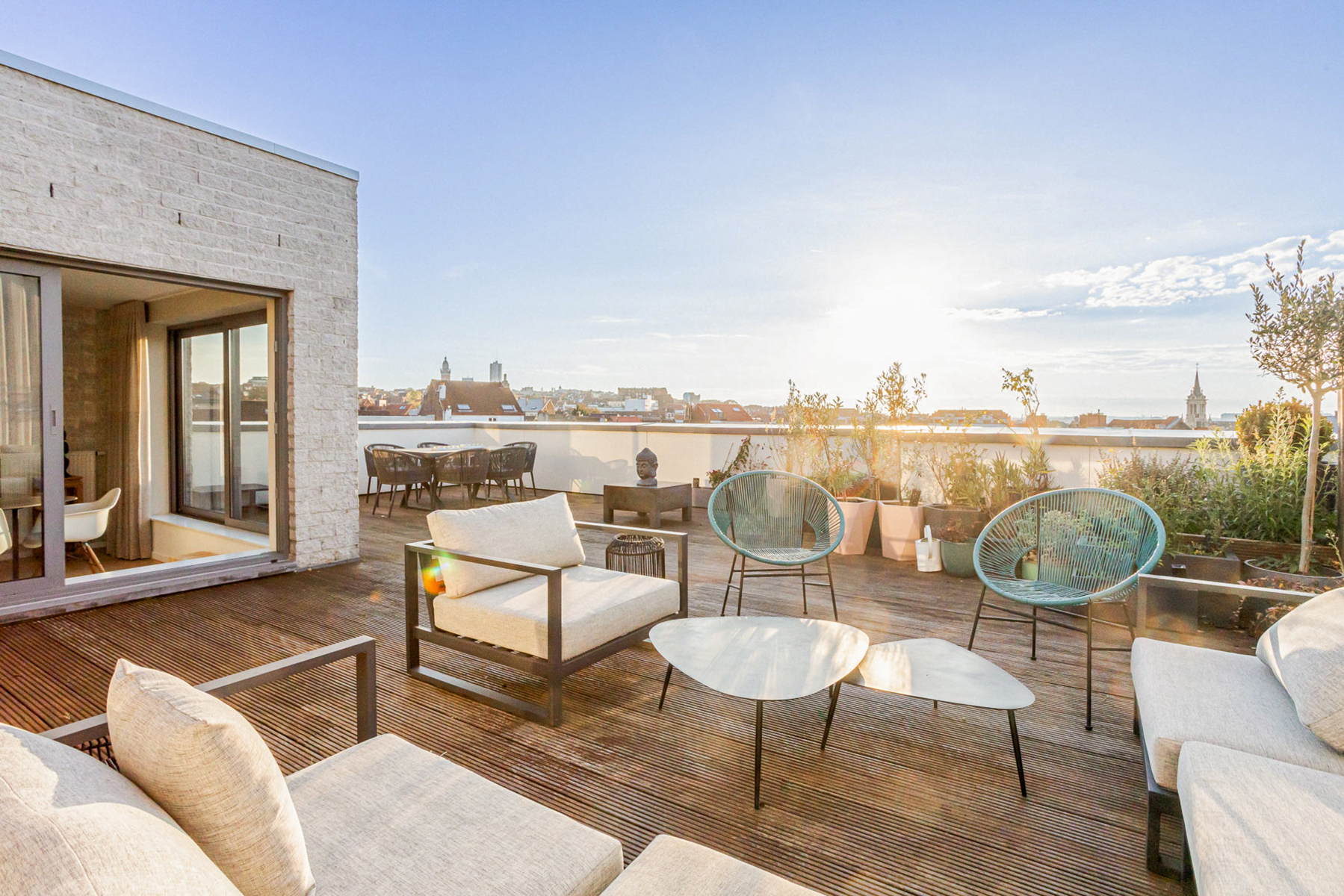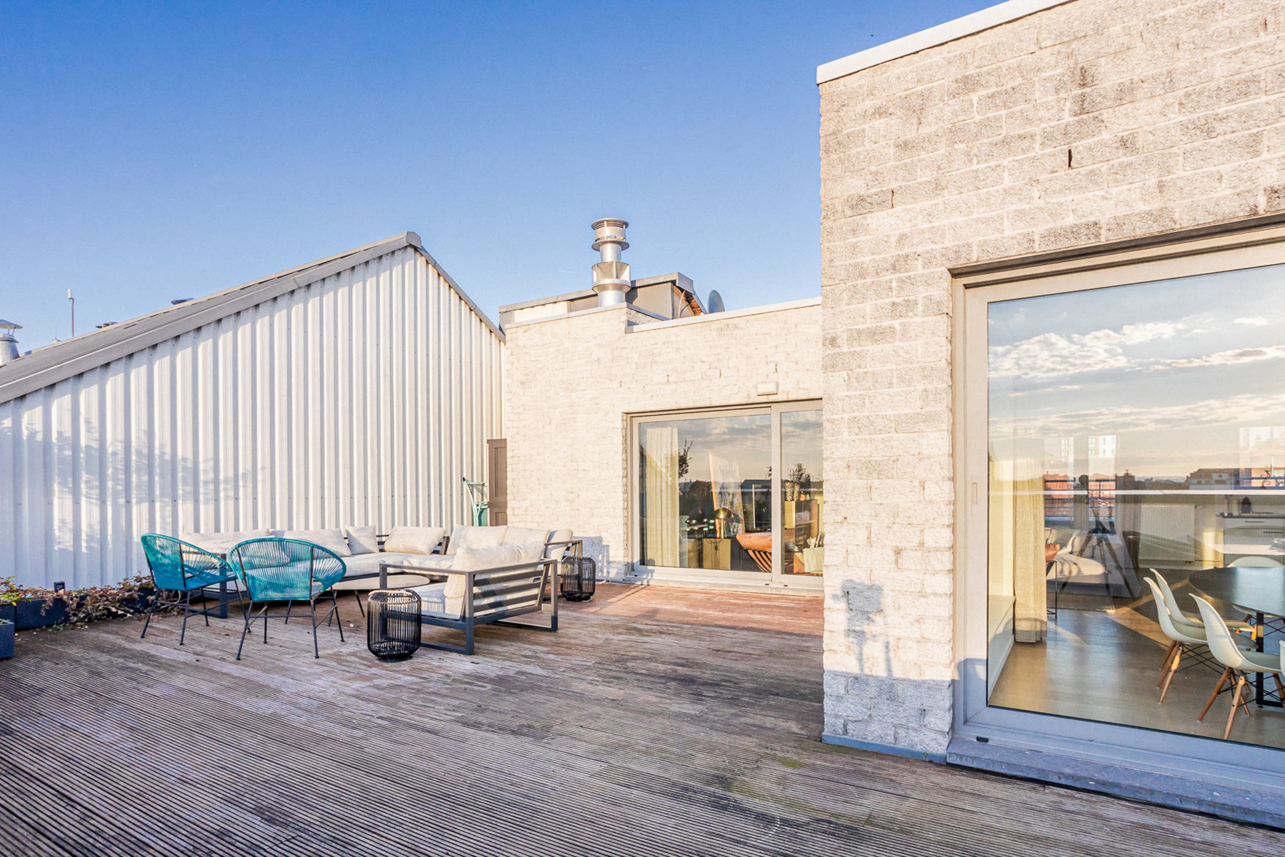 Dit prachtige penthouse van 185 m² (1060 St Gilles), versterkt met 90 m² terrassen, zal u betoveren met zijn charme en verfijning. Dit uitzonderlijke pand biedt een adembenemend panoramisch uitzicht over de stad Brussel en valt op door zijn betoverende omgeving en zijn lichte ruimtes. De royale ontvangstruimte van 80 m² komt sierlijk uit op twee grote terrassen, overspoeld met natuurlijk licht, waardoor een sfeer van rust en welzijn ontstaat. Daar vindt u drie elegante slaapkamers, twee verfijnde badkamers, drie toiletten en een wasruimte. De toegang is volledig privé dankzij een speciale lift. Dit juweeltje omvat ook een parkeerplaats (+40.000€) met een laadstation voor elektrische voertuigen, evenals een beveiligde kelder van 40 m² met gepantserde deur. Dit uitzonderlijke penthouse belichaamt luxe in zijn puurste vorm. Een bezoek is essentieel voor liefhebbers van zeldzame en prestigieuze goederen.