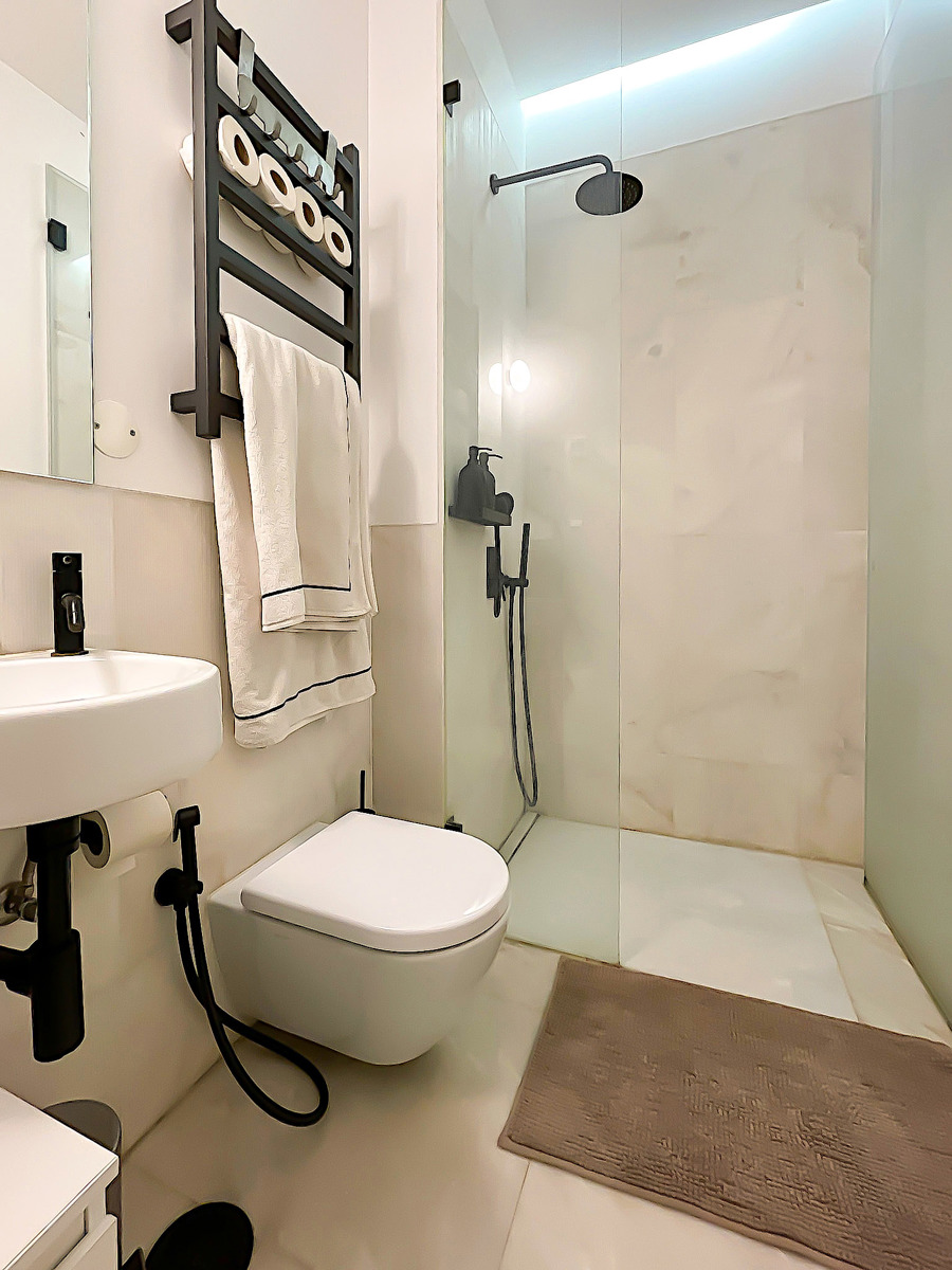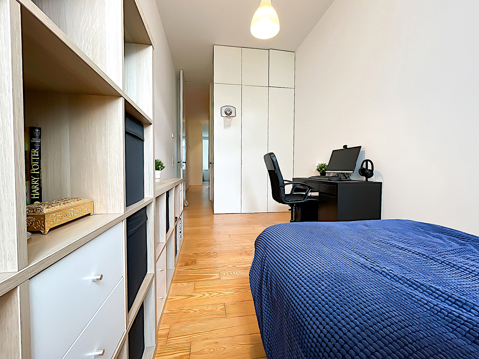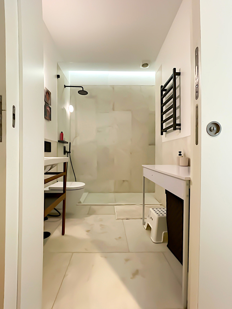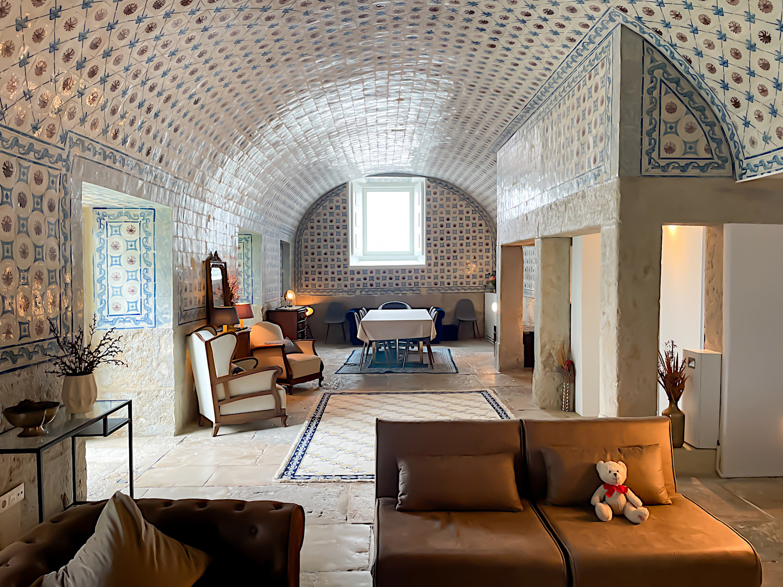Het aangeboden appartement, een T3+1 van 266 m², weerspiegelt perfect de geest van deze bijzondere plek: indrukwekkende ruimtes, overvloedig natuurlijk licht en edele materialen. Het bestaat uit drie slaapkamers, een kantoor en vier badkamers, allemaal afgewerkt met materialen van uitzonderlijke kwaliteit. De ruime woonkamer van 100 m², versierd met authentieke azulejos uit de 18e eeuw, opent naar een privétuin van 90 m² op het zuiden, die een natuurlijke verlenging vormt van de leefruimtes.