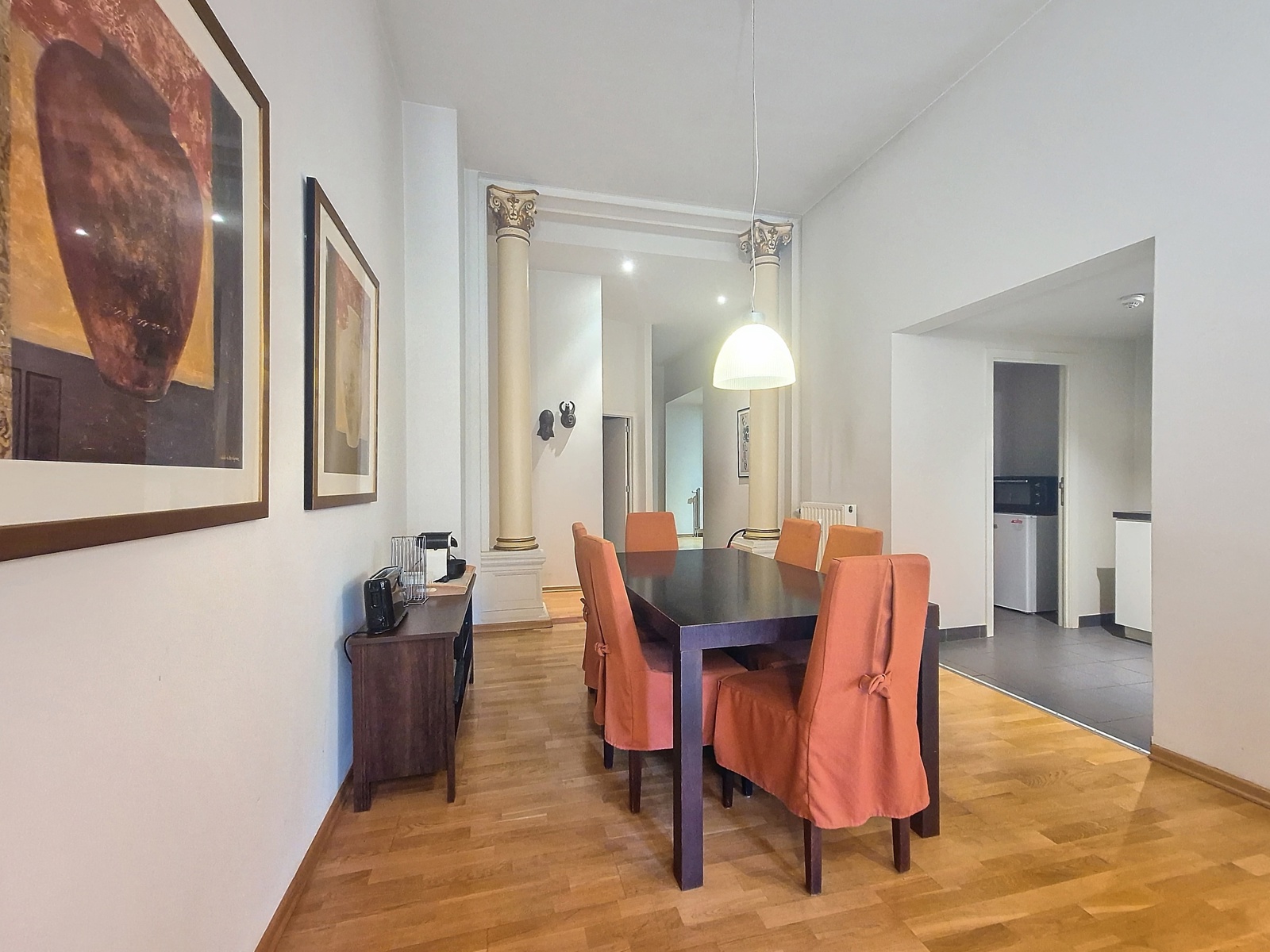 Prachtige dubbele huurwoning, gemeubileerd en verhuurd op korte/middellange termijn, met een totale oppervlakte van 1446 m² bruto inclusief gemeenschappelijke ruimtes, waarvan 1130 m² netto, waarvan 12 erkende units. De gevel strekt zich uit over 18 meter met een diepte van 20 meter, versierd met een tuin en een terras, wat een bruto jaarinkomen genereert van ± 210.000 euro. Dit gebouw is als volgt samengesteld: een appartement van 60 m² met een slaapkamer, een doucheruimte, een woonkamer, een eetkamer en een keuken; een tweede appartement van 110 m² bestaande uit een grote slaapkamer, een kantoor, een badkamer en douche, een woonkamer, een eetkamer, een keuken met zicht op de tuin; een appartement van 80 m² met slaapkamer, doucheruimte, woonkamer, eetkamer en keuken, eveneens met uitzicht op de tuin; nog een appartement van 75 m² met slaapkamer, badkamer en douche, ingerichte keuken, woonkamer, eetkamer en kantoor; een appartement van 90 m² met een grote slaapkamer, een grote kleedkamer, badkamer en douche, woonkamer, eetkamer en ingerichte keuken; een appartement van 100 m² met uitzicht op de tuin en directe toegang daartoe, bestaande uit twee slaapkamers, een doucheruimte, een woonkamer, een eetkamer en een ingerichte keuken; nog een appartement van 90 m² met twee slaapkamers, doucheruimte, woonkamer, eetkamer en ingerichte keuken; een appartement van 95 m² met uitzicht op de tuin, twee slaapkamers, doucheruimte, woonkamer, eetkamer en ingerichte keuken; een appartement van 85 m² met uitzicht op de tuin, een slaapkamer, doucheruimte, woonkamer, eetkamer en ingerichte keuken; tenslotte een duplex van 100 m² met een slaapkamer, woonkamer, eetkamer en ingerichte keuken.