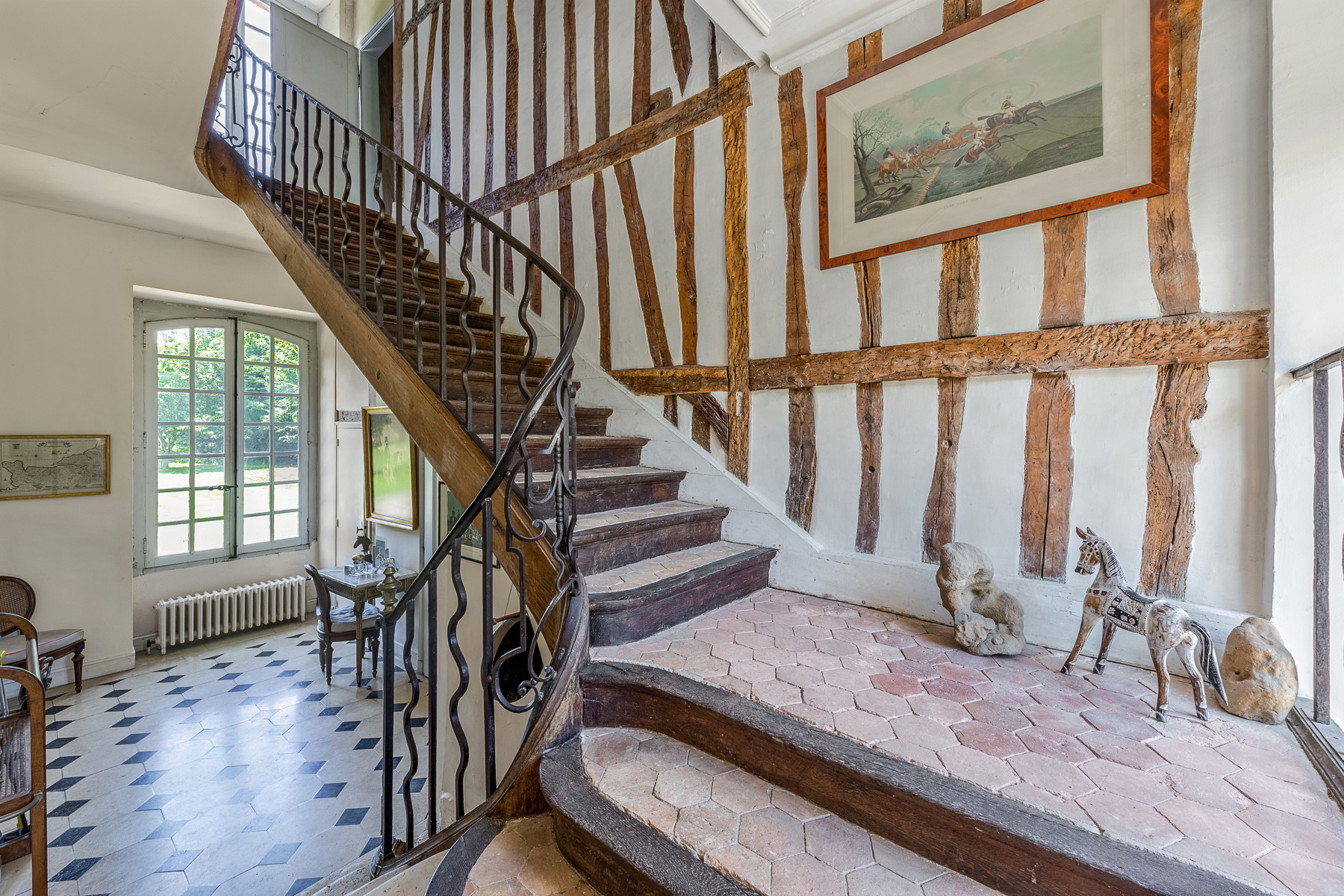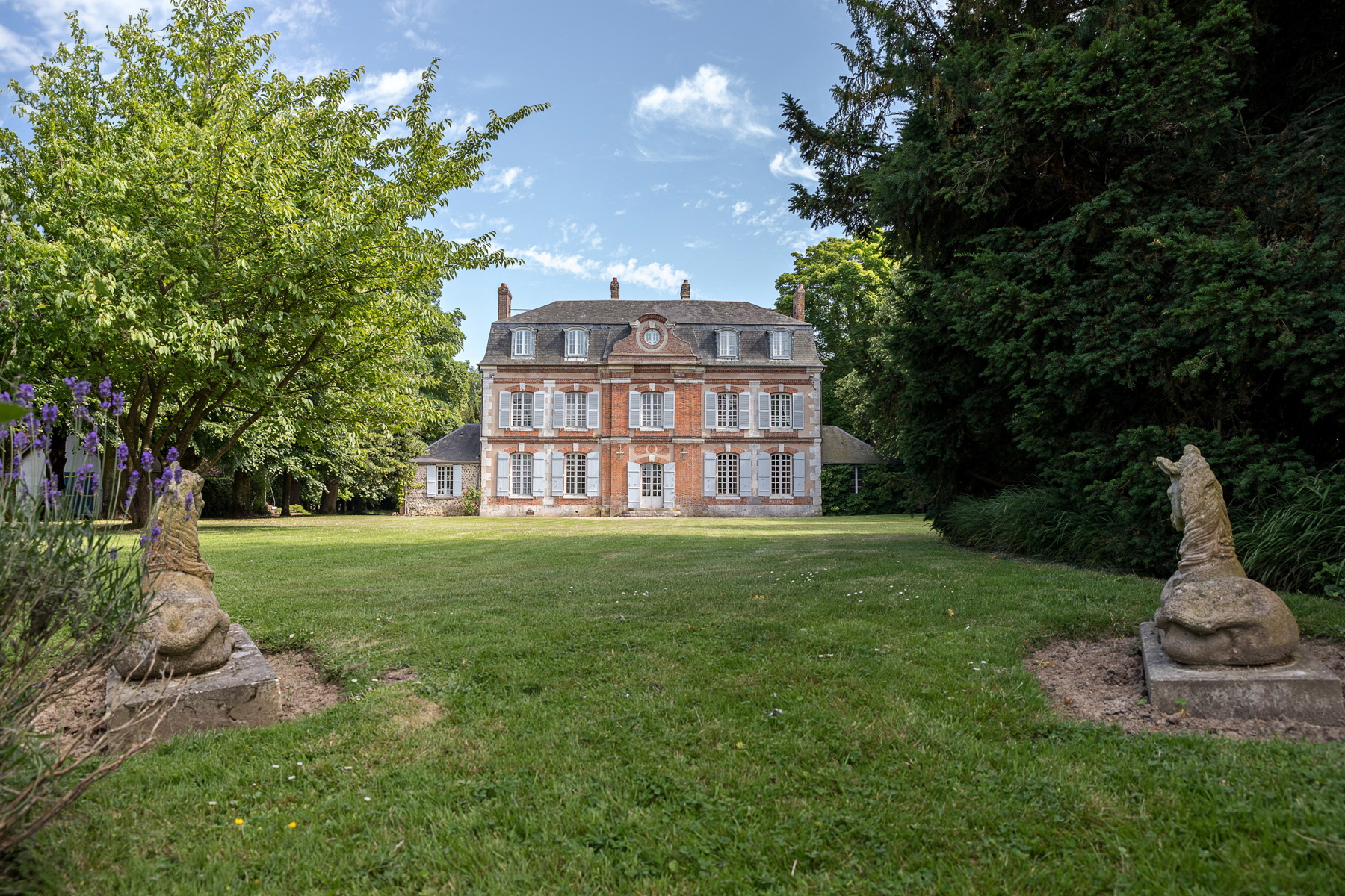Op 90 kilometer van Parijs en 80 kilometer van Honfleur ligt dit prachtige, karakteristieke landgoed, gemakkelijk bereikbaar over de weg, verspreid over ongeveer 5 hectare. Het zal zowel natuurliefhebbers als paardenliefhebbers aanspreken dankzij de aanwezigheid van stallen, grote weilanden en de mogelijkheid om paddocks aan te leggen. Het elegante en historische kasteel dateert uit de 18e eeuw. Het werd vanaf 1745 gebouwd door André Adrien Hélot, raadslid in het parlement van Rouen, die een beroep deed op architect Joseph Abel Couture, bekend van diverse projecten in de regio. Enkele oudere elementen, daterend uit de middeleeuwen, zijn in het geheel opgenomen. Het rechthoekige hoofdgebouw is gelijkvloers en heeft een leien dak met dakkapellen. Binnen zijn verschillende historische decoraties bewaard gebleven, met name in de grote woonkamer op de begane grond, waarvan de rijke ornamentiek getuigt van de verfijning van de plek. Het landgoed omvat tevens drie bijgebouwen, waaronder een prachtige ronde duiventil van vuursteen en kalksteen, en twee andere gebouwen die talloze ontwikkelingsmogelijkheden bieden, afhankelijk van de wensen van de toekomstige eigenaren. Een levendige plek, zowel vredig als vol potentieel, die uitnodigt om een nieuwe pagina in de geschiedenis te schrijven.